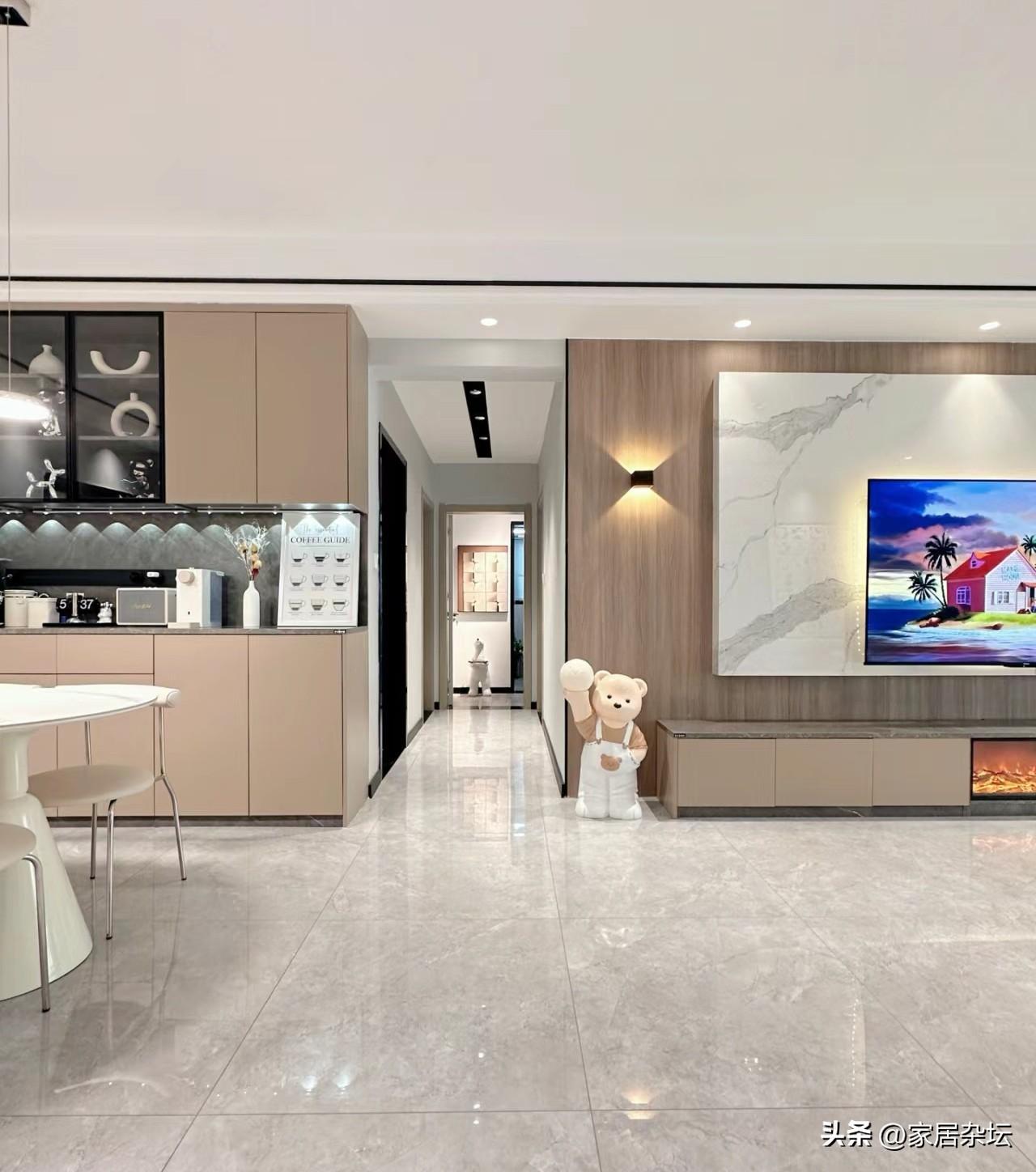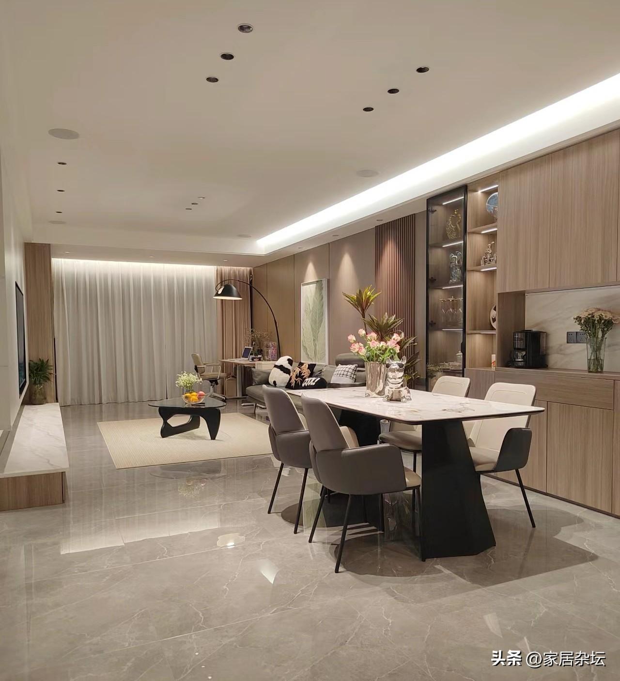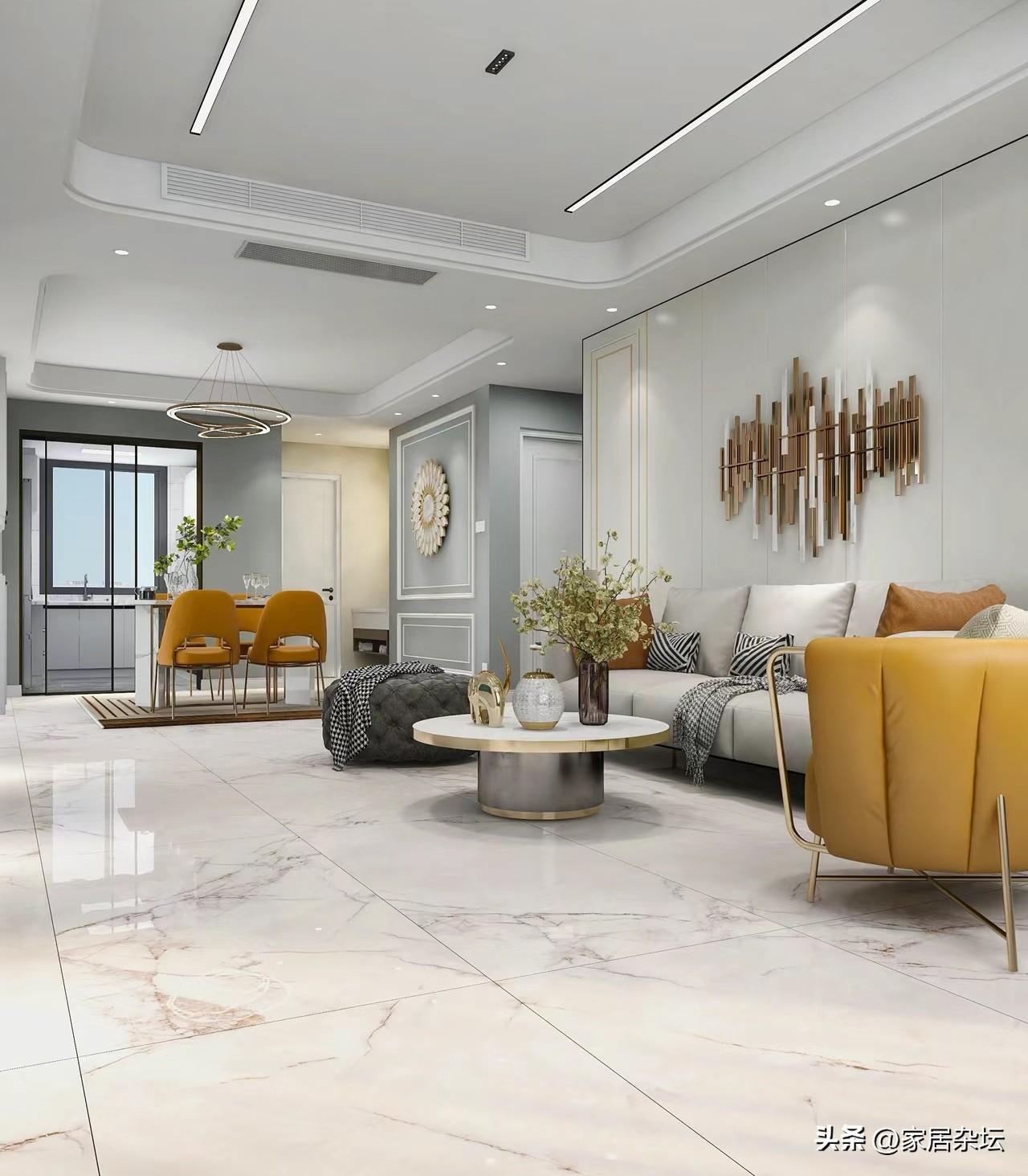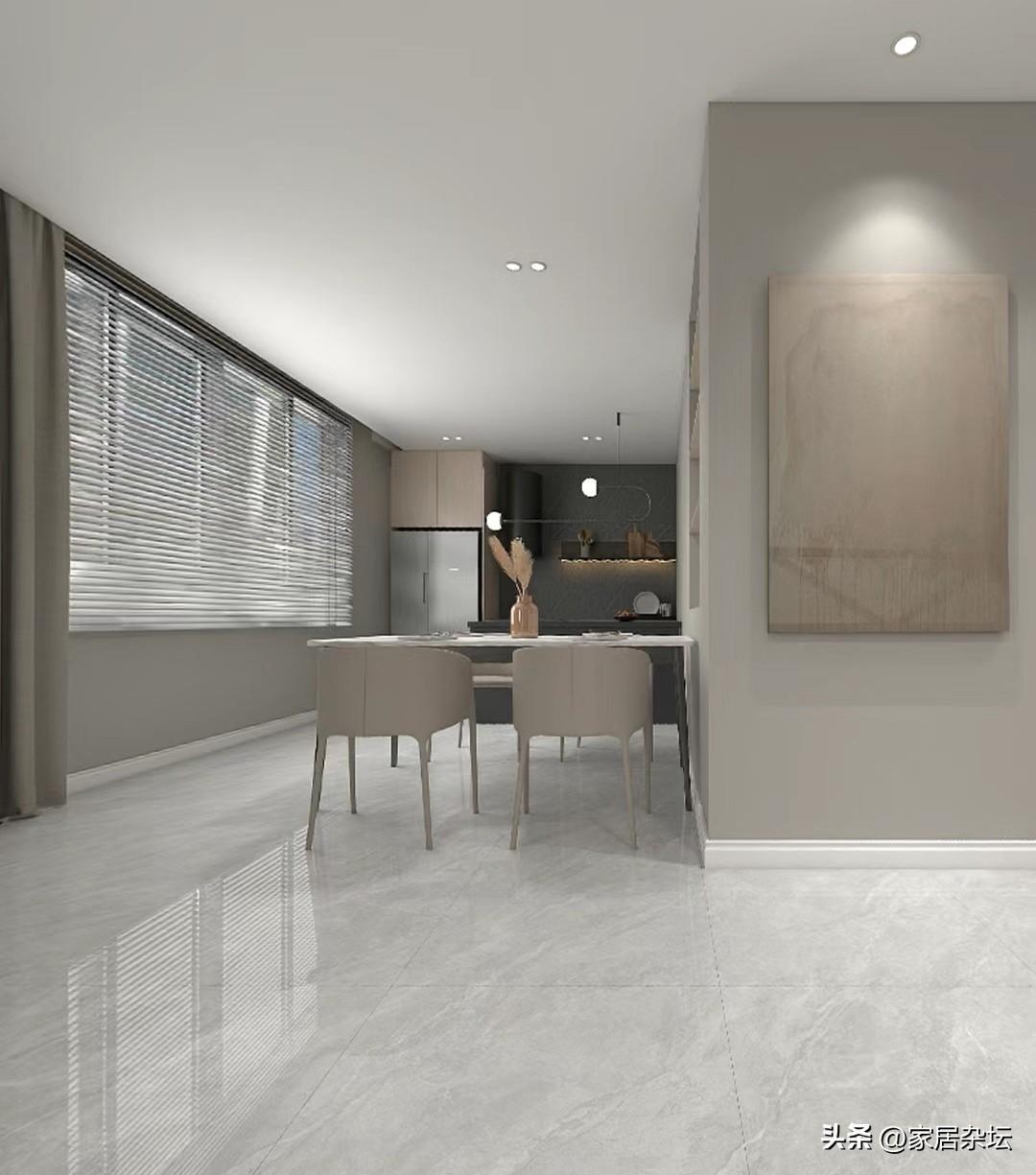 ②、如果只是客餐廳通鋪,那麼客餐廳面積在30平米以上,此時有條件的話,也儘量選擇750×1500毫米的瓷磚。