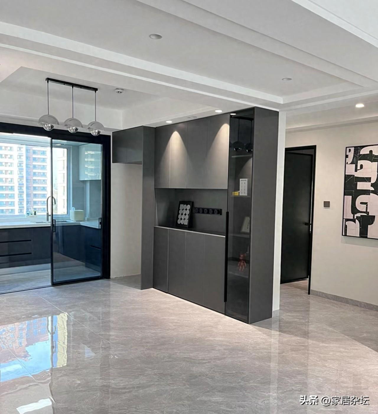①、全屋通鋪,條件允許的話,那麼建議大家儘量選擇750×1500毫米的瓷磚。你會發現通鋪完成以後的效果,真的很有檔次。
