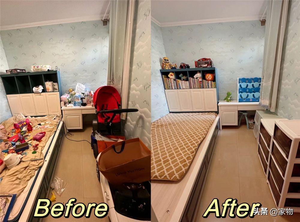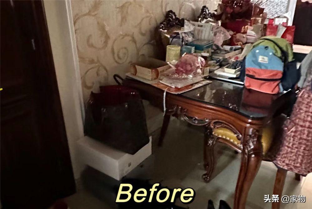 清潔過後,因爲這一家三口不願意扔掉太多的東西,所以就在原有所剩物品的基礎上進行歸類收納,做到了它最大限度的乾淨,即便傢俱裝飾很老,但也不會顯得尷尬。