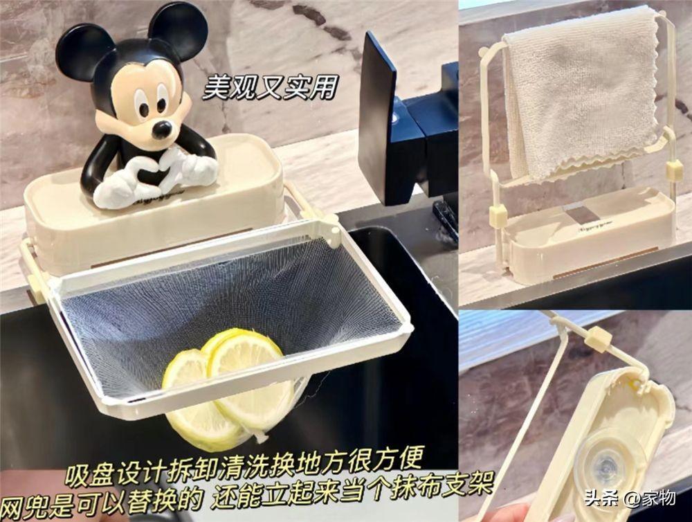 吸盤式的網兜架,我的意見是能用,但沒想象中那麼好用,平常放抹布還行,但如果過濾茶葉食材什麼的,很容易因爲過沉而翻倒到水槽內,水濺得到處都是,體驗極差。