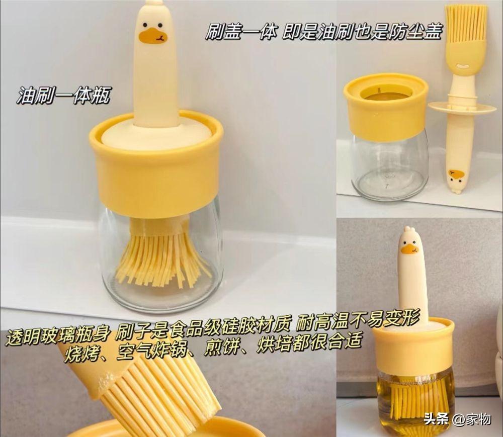 將油刷融入蓋子上,和很多類似的帶勺蓋調料盒一樣,都是我認爲雞肋的設計,看似結合了二者,但刷油的時候卻會阻擋視線,也會減少油盒內收納空間,刷子也一直泡在裏面,衛生堪憂。