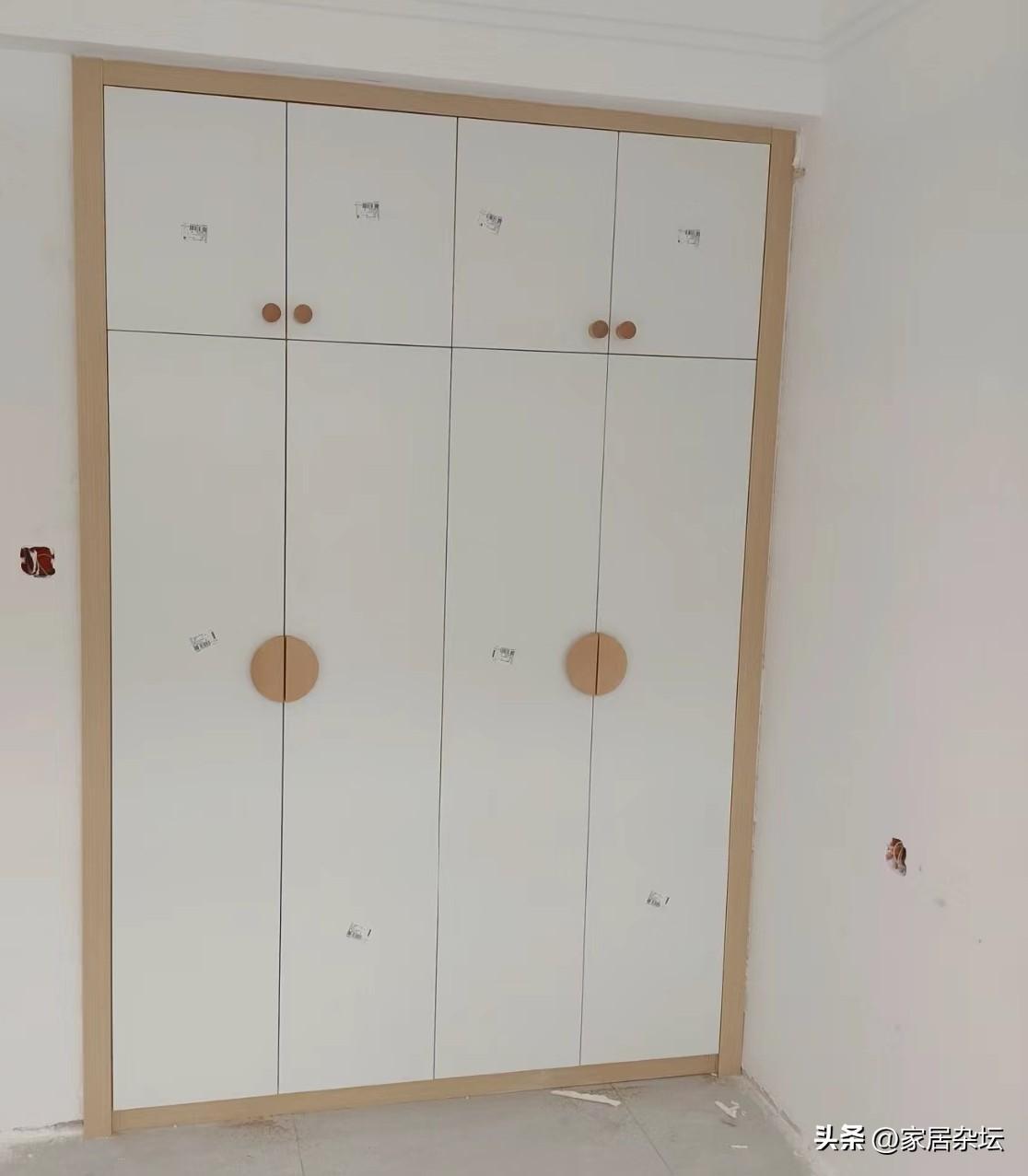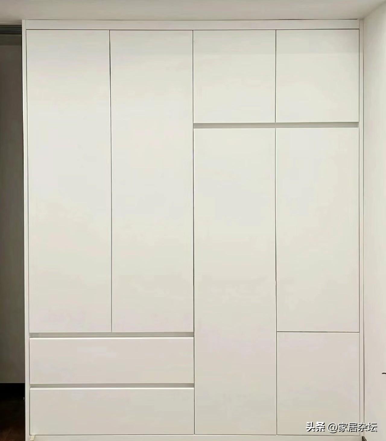 ①、如果選擇普通的人造板材,儘量不要選擇一門到頂衣櫃。因爲一門到頂的櫃子,即使安裝了拉直器,時間長了,還可能會出現變形而導致櫃門關不上。