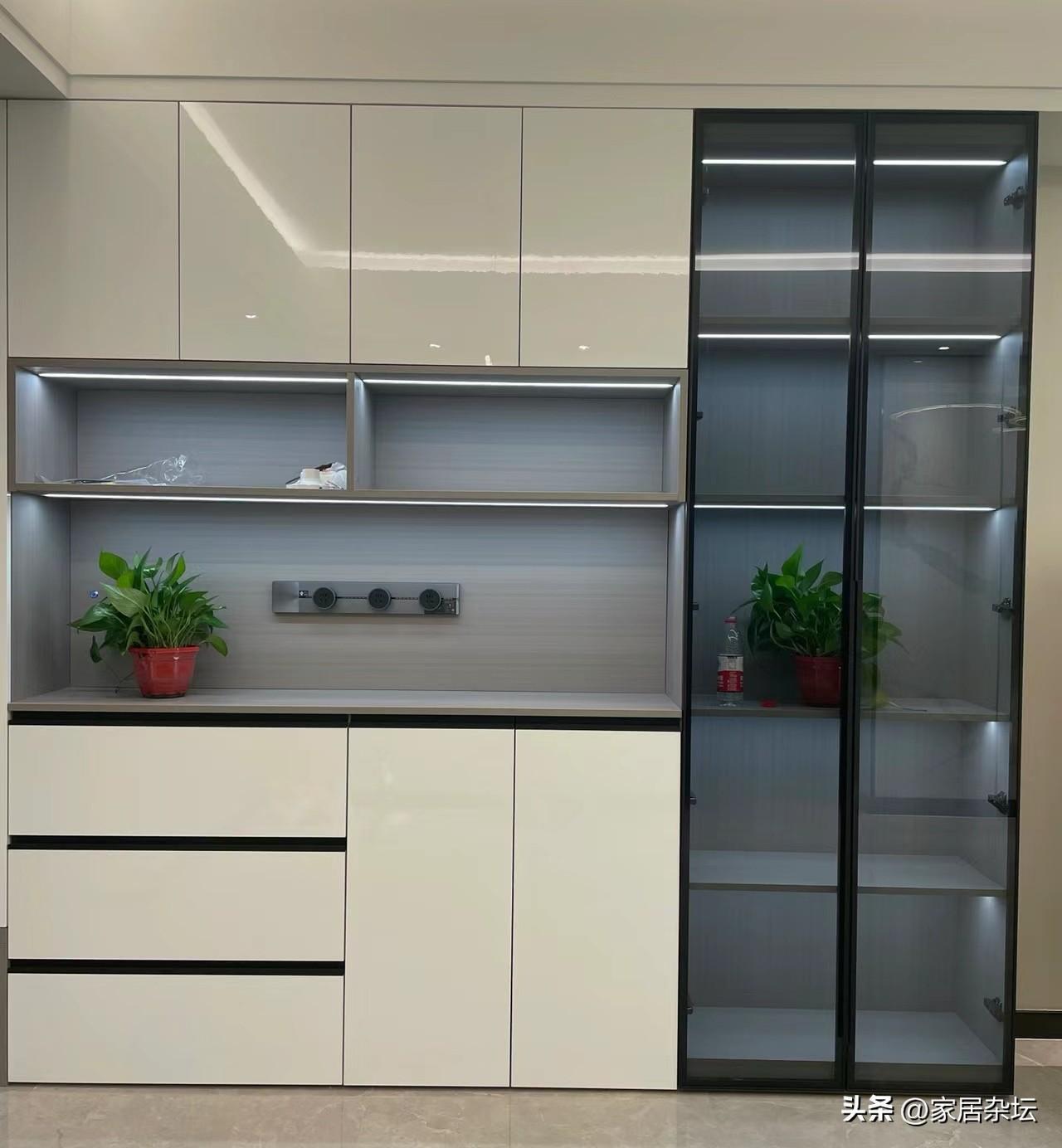 ②、對於家裏一些展示區,例如放包的區域放酒的區域,可以選玻璃門。其實這些區域,玻璃櫃門會更好看,因爲內部比較整齊。