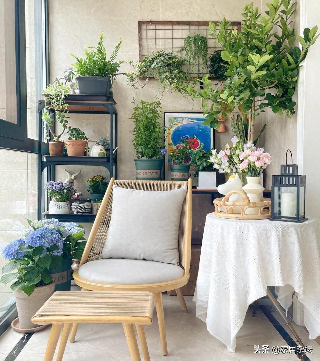①、在陽臺佈置一個簡單的小桌子和一把舒適的椅子。這樣一個簡單的休閒陽臺,就出現在我們家裏了。