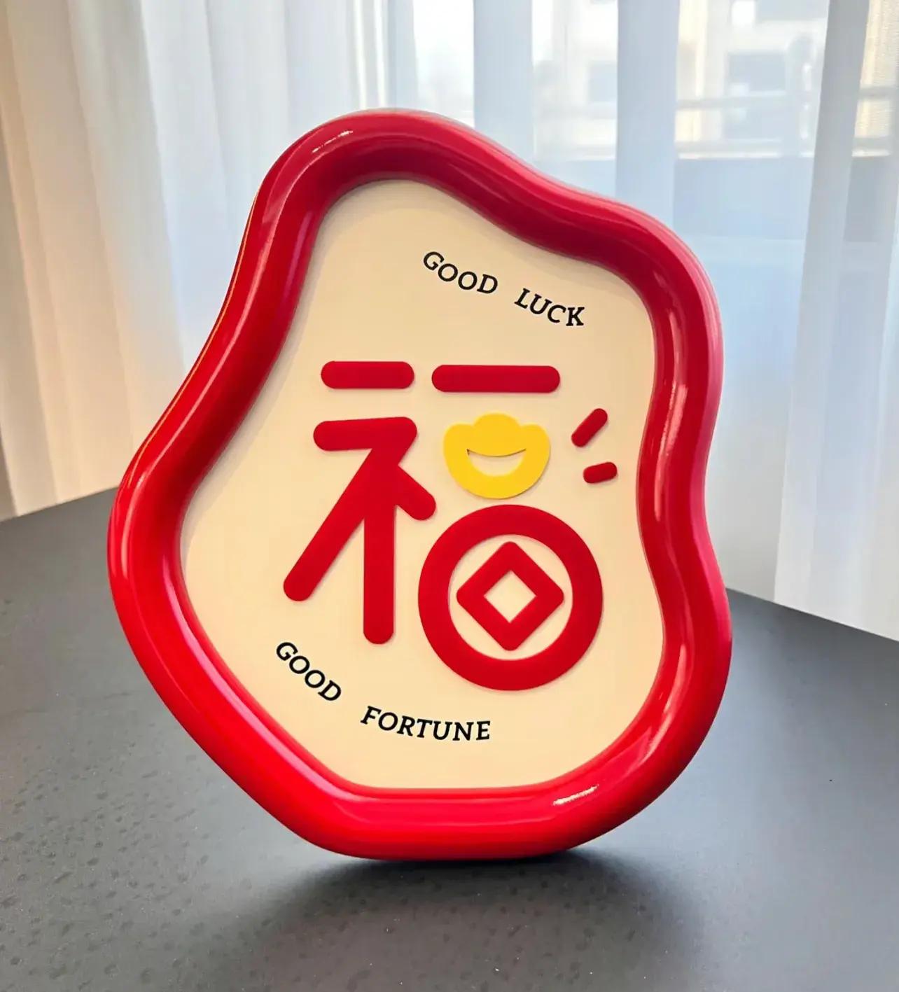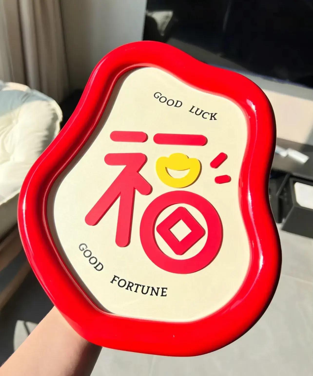 日常也沒閒着,就放在桌面上,不規則的包邊,搭配簡單的福字,又精緻,寓意又好,代表着添福來財,看着都很開心,估計還能再用幾個年頭。
