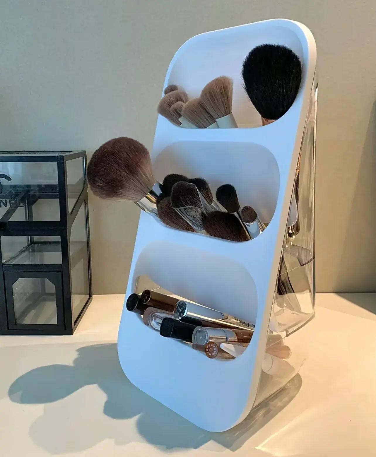 所以化妝用到的長桿狀物品,包括但 不侷限於化妝刷、眉筆、睫毛膏、脣釉,都能用它收納。