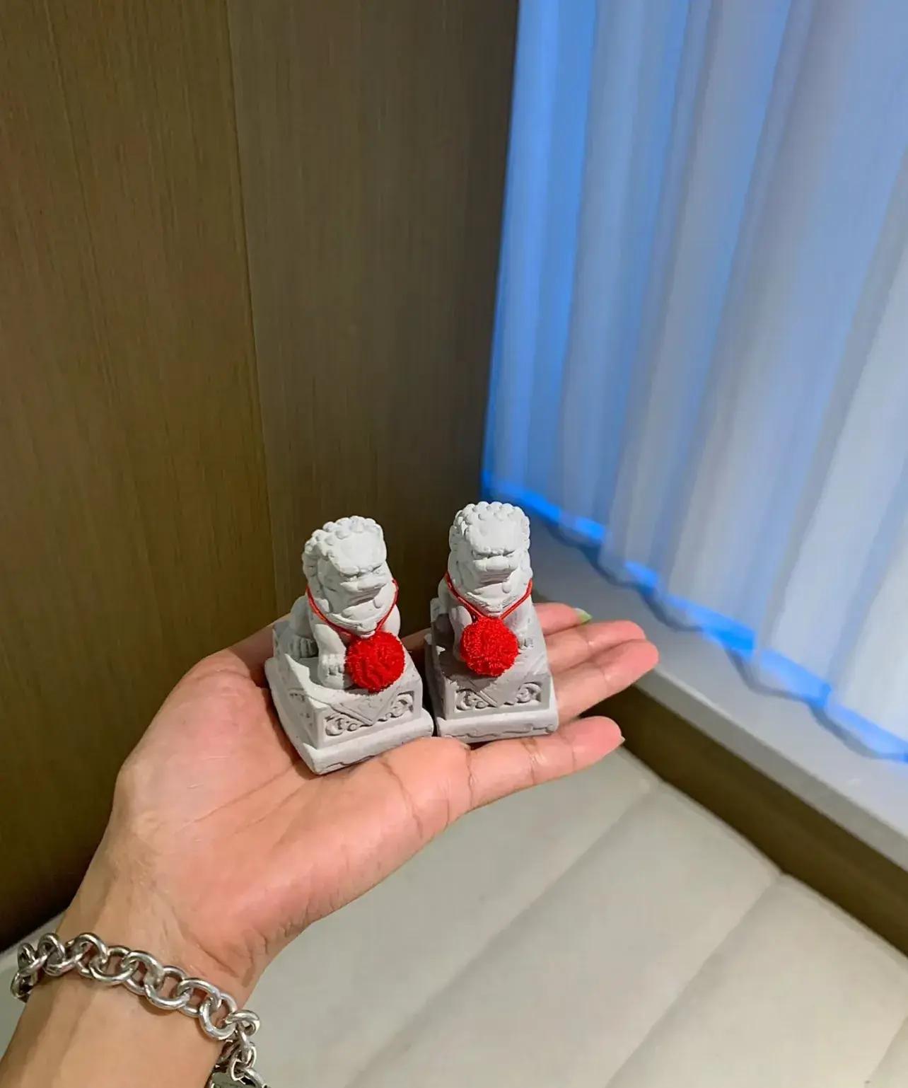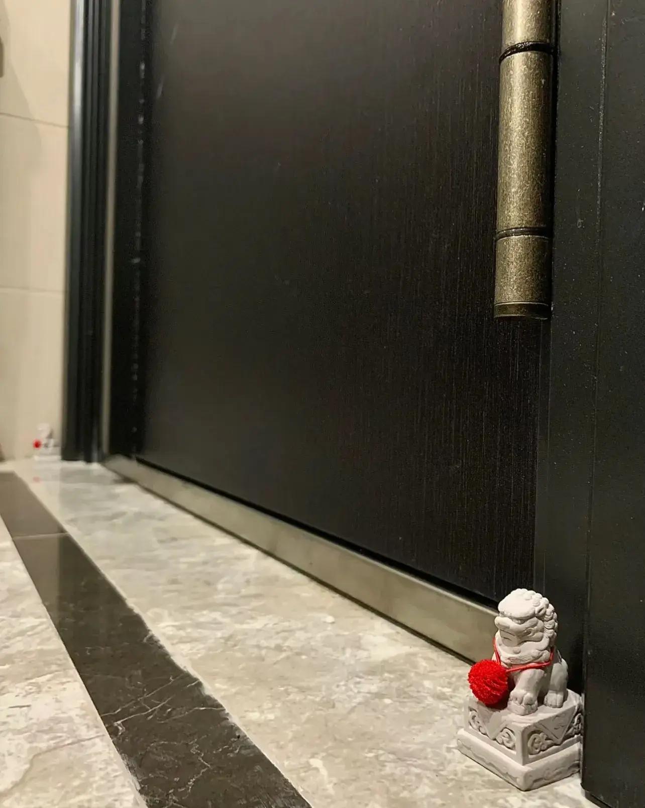 就在入戶門口,左右各放一個,有沒有起到鎮宅的作用不知道,反正每次回家,看到兩個小奶獅蹲門口等着我,就很開心。