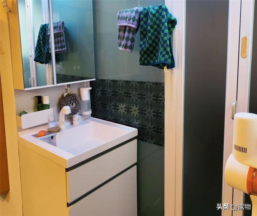 家雖只有30㎡,但還是將洗手檯外移,做了完整的乾溼分離,已進家門就可以在洗手檯的位置洗手洗臉,裏面的如廁和洗漱區也能將水漬隔絕開來,日常打掃會輕鬆很多。