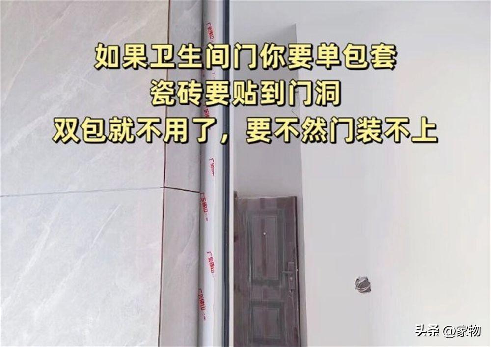 廚房衛生間的門,現在很多人追求極簡的風格,這就需要做成單包,而如果想要做單包套的話,就最好是提前留出瓷磚量,並將其鋪貼在門框內邊,這樣一來,裝門的時候不用再去返工。