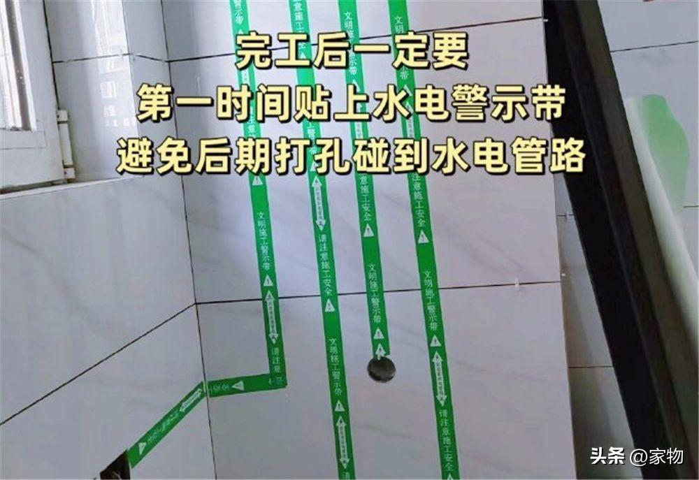 有句話說的好,最懂你家水電的,除了做水電的師傅就是貼磚師傅了,貼完磚後,在沒有安裝完畢之前,最好是貼上警示帶,後續電器傢俱安裝打眼鑽孔的時候,就不容易出現打到電線或打爆水管的情況了。