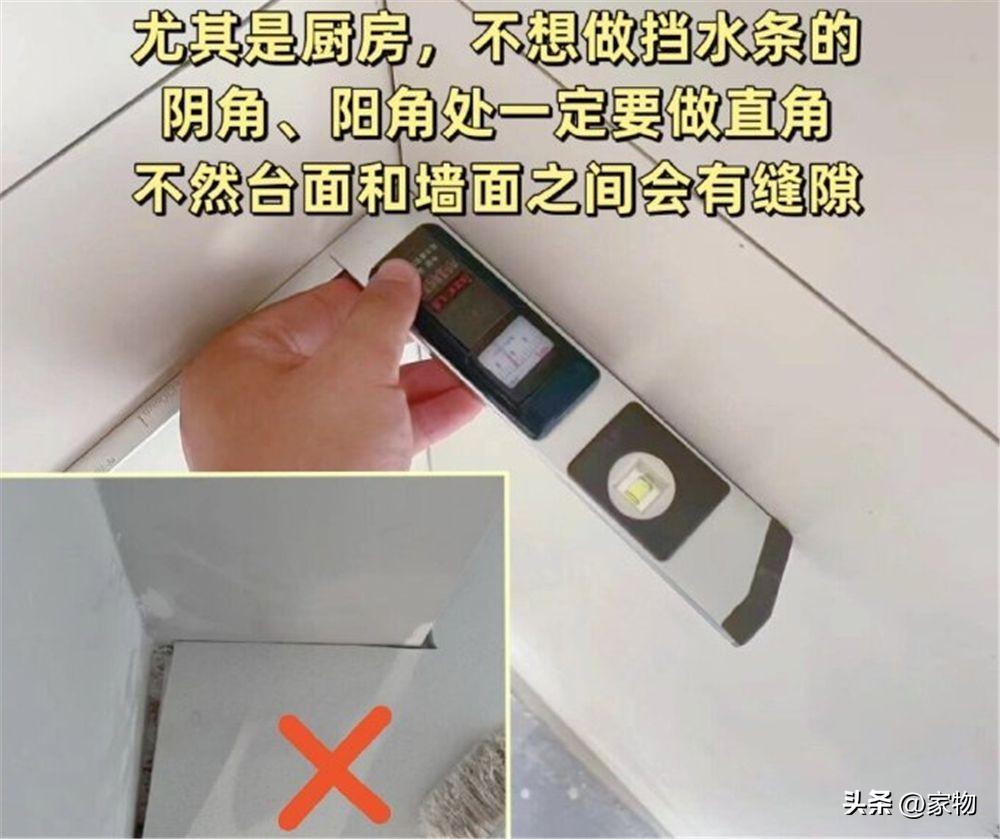 廚房和衛生間的牆面,瓷磚一定要貼平直,現在有很多人都習慣做無擋水條的,如果牆面瓷磚貼得不夠平,很容易出現這種較大的縫隙,個人感覺這點有必要注意。