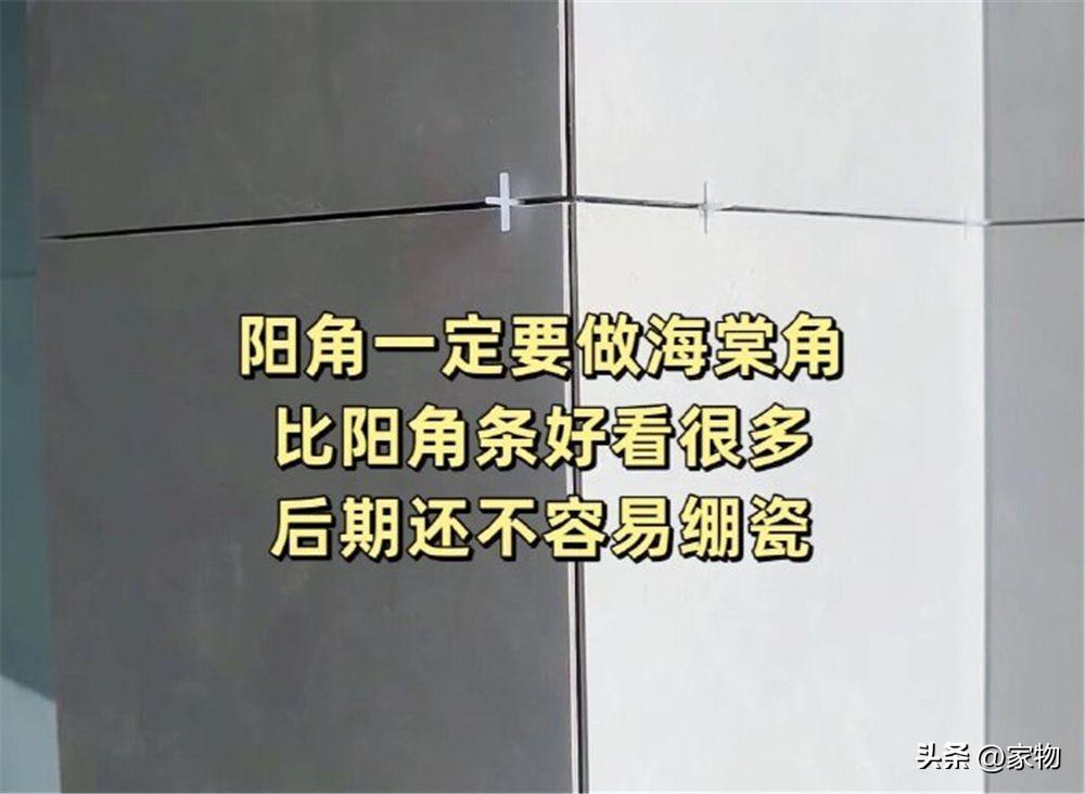 買瓷磚的時候,就要算好陽角條的切角數量,一般來說一個邊也就一兩塊錢切一次,工廠就能給切好,後面貼磚直接讓師傅貼海棠角而不是做陽角條,好看很多。