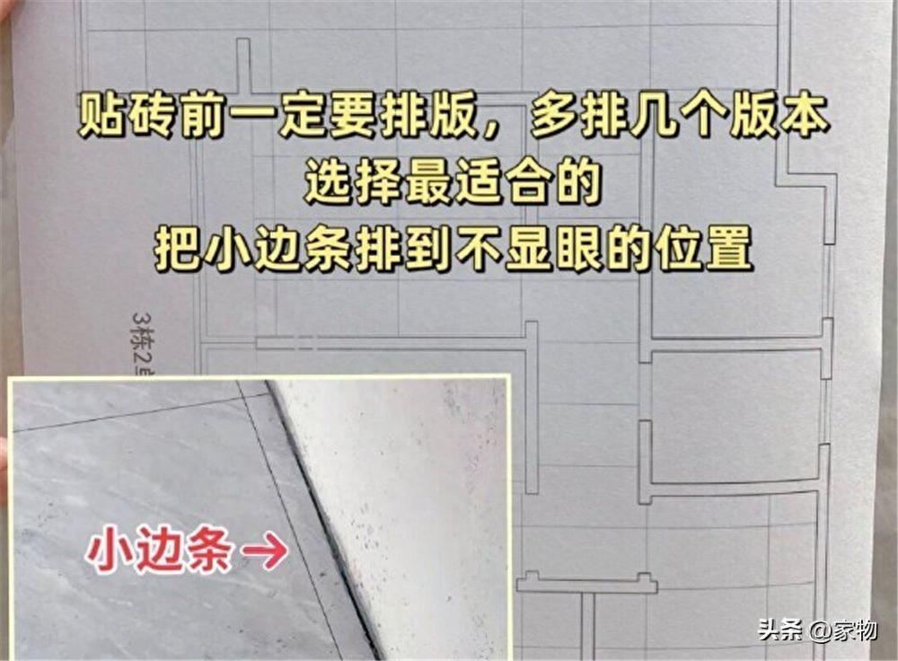 貼磚前的排版,是我認爲貼瓷磚過程中最重要的步驟,甚至沒有之一,如果一開始的排版就出了問題,或者根本沒有排版,很容易就造成家裏瓷磚鋪貼後,縫隙窄條暴露在外面,很難看。