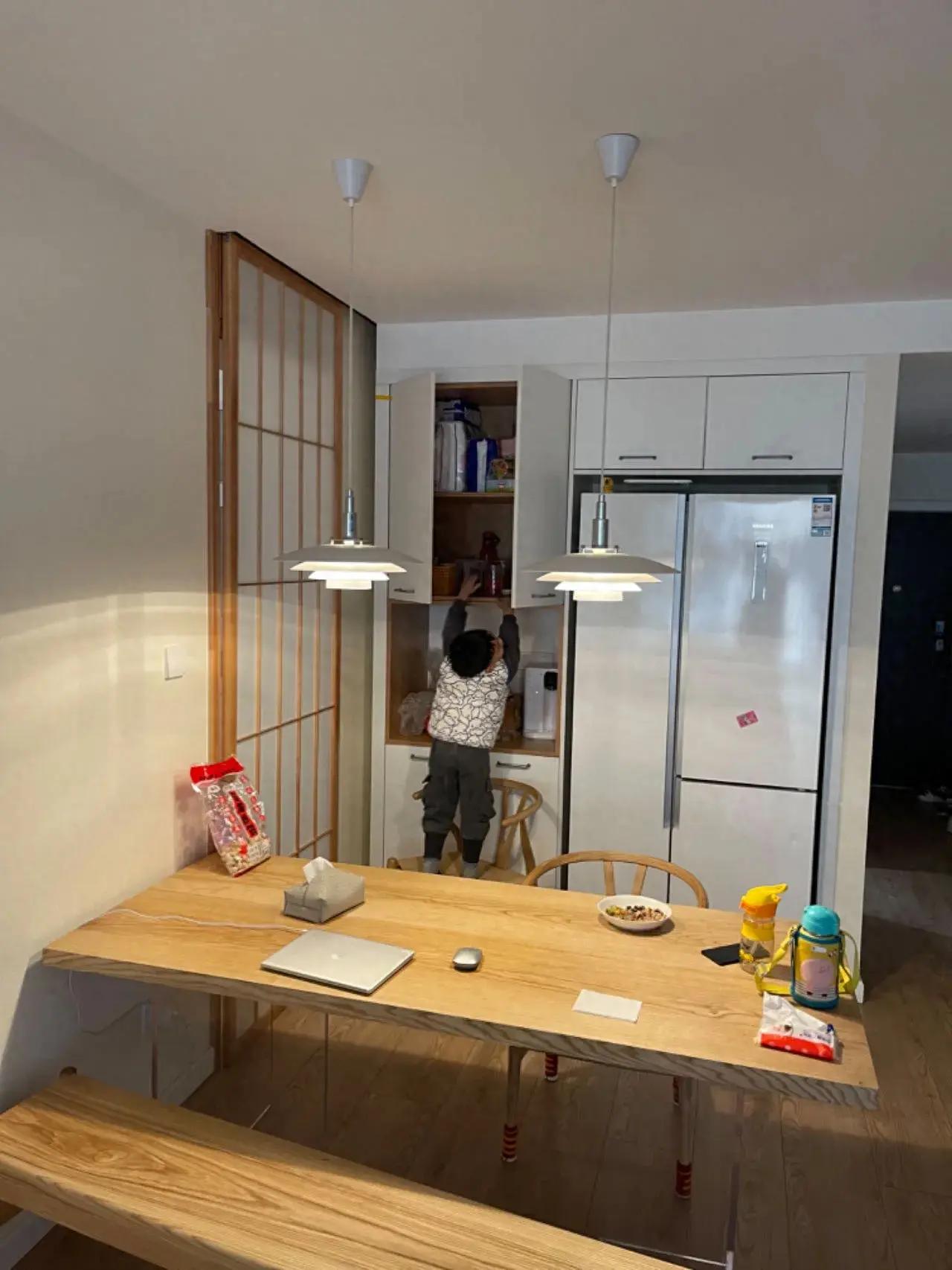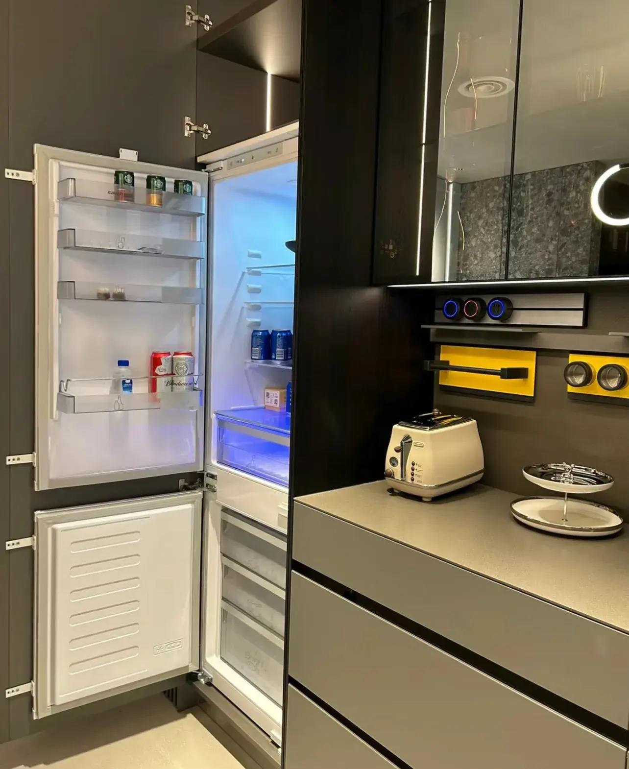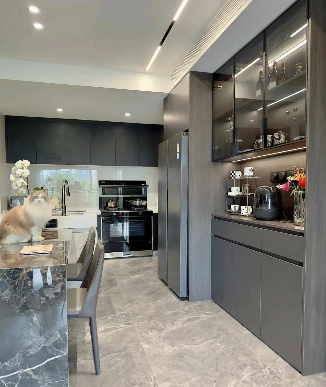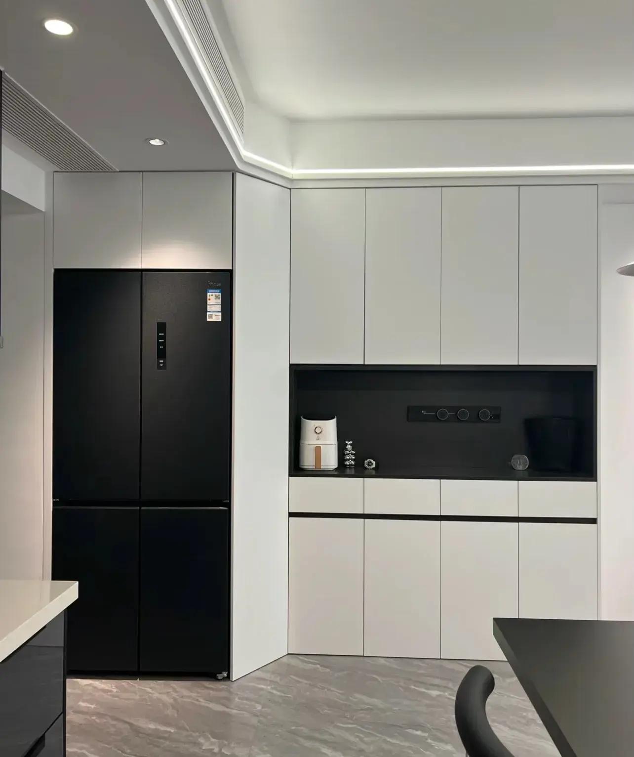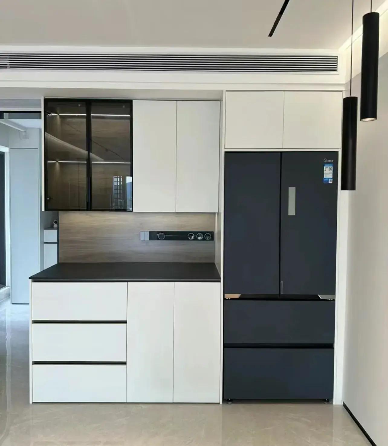 到這基本上就是普通冰箱的做在餐邊櫃裏的顏值極限了,如果還不滿意,那就去做全嵌冰箱吧。