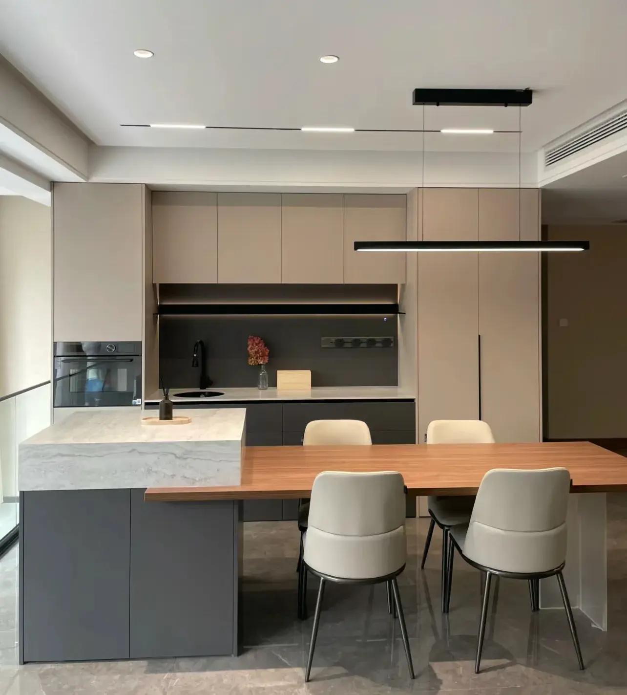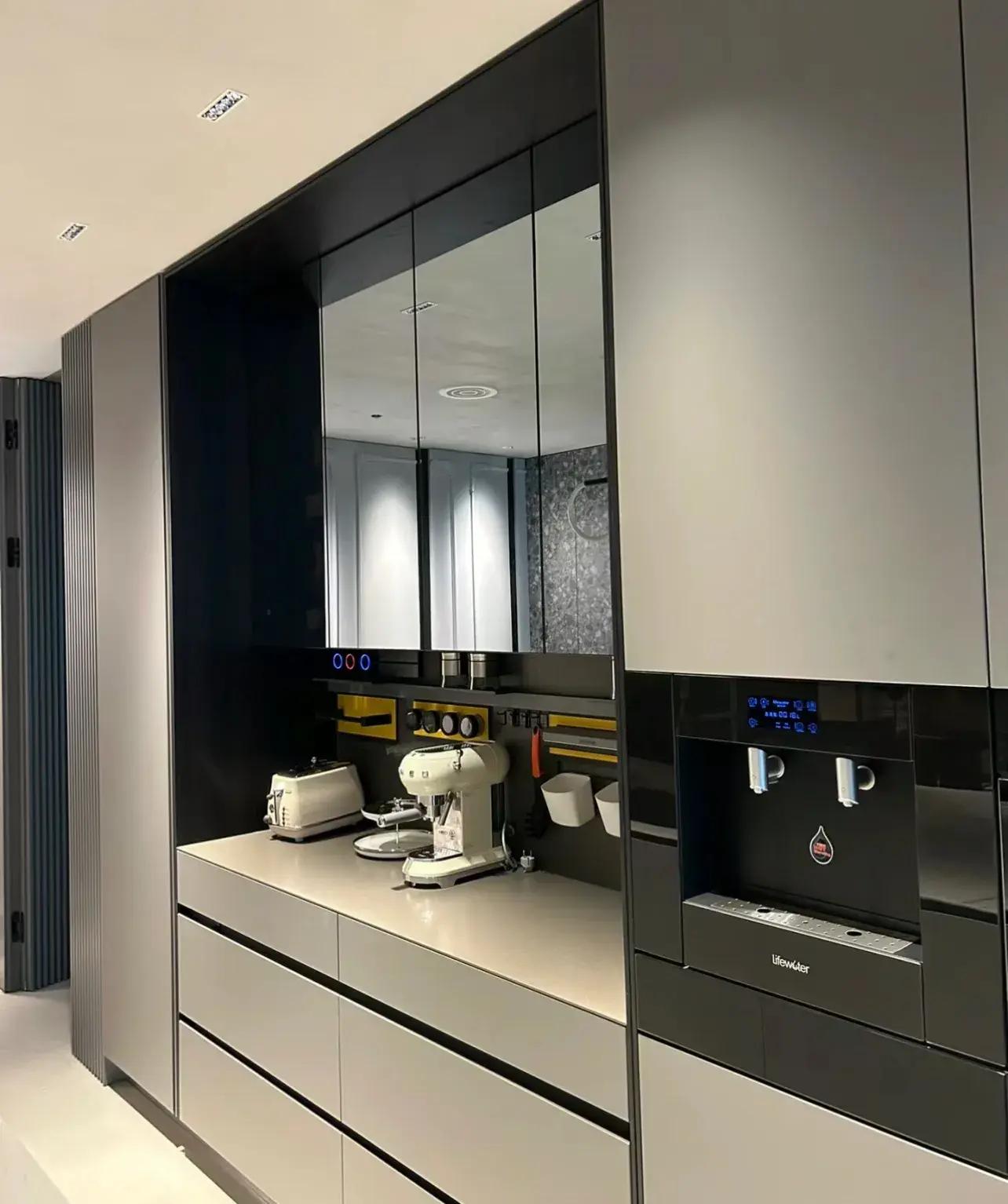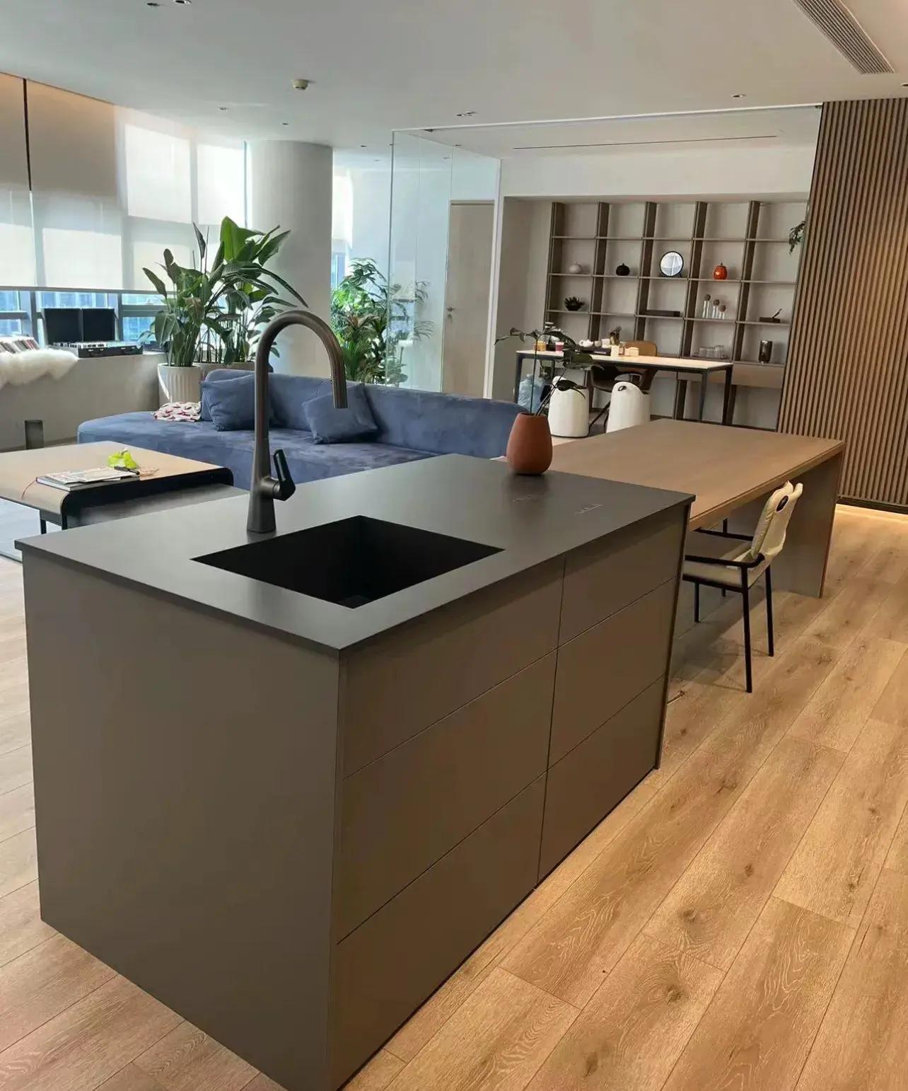 當然,水龍頭也不一定是非得在餐邊櫃上,如果島臺夠大,完全可以設置在島臺上,更合理一些。