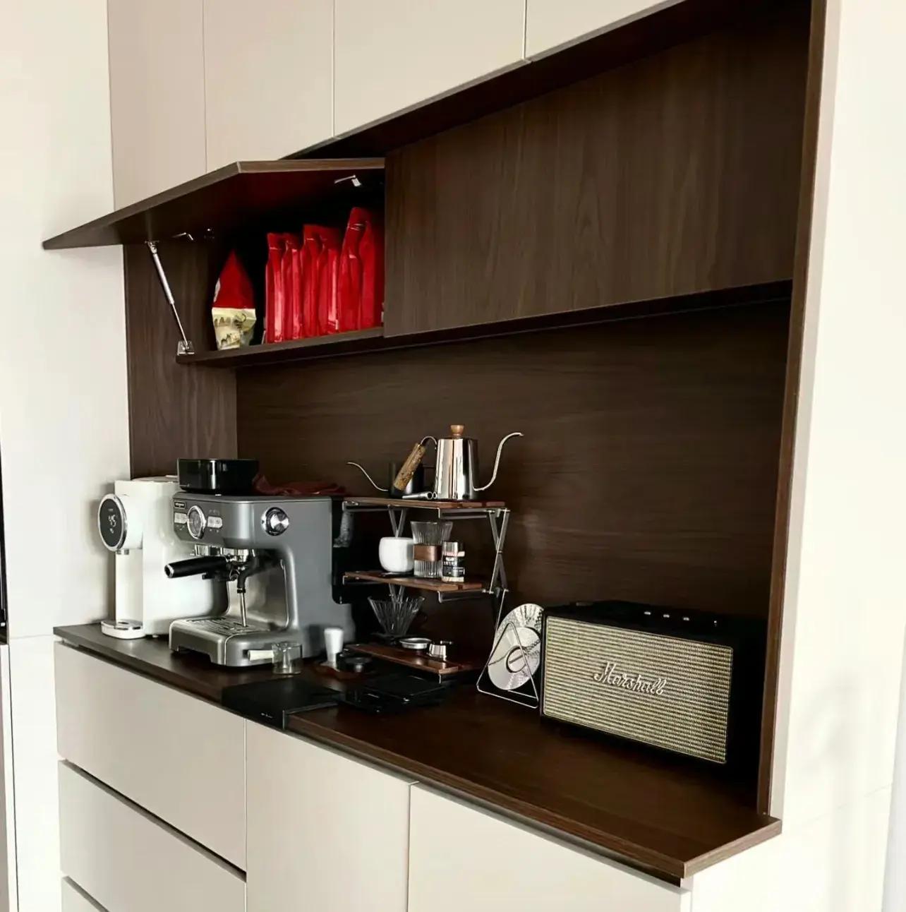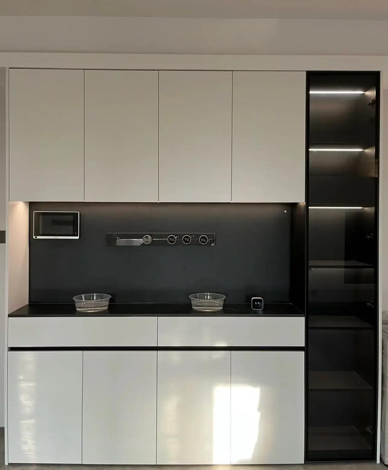 非也,每個家庭的情況不一樣,不一定是什麼功能都得要,比如西廚這東西,就不是所有家庭都想要,也不是所有家庭都要得起的,那這時候,其實像上圖這種設計比較完備的成品餐邊櫃,也不失是一種好選擇。