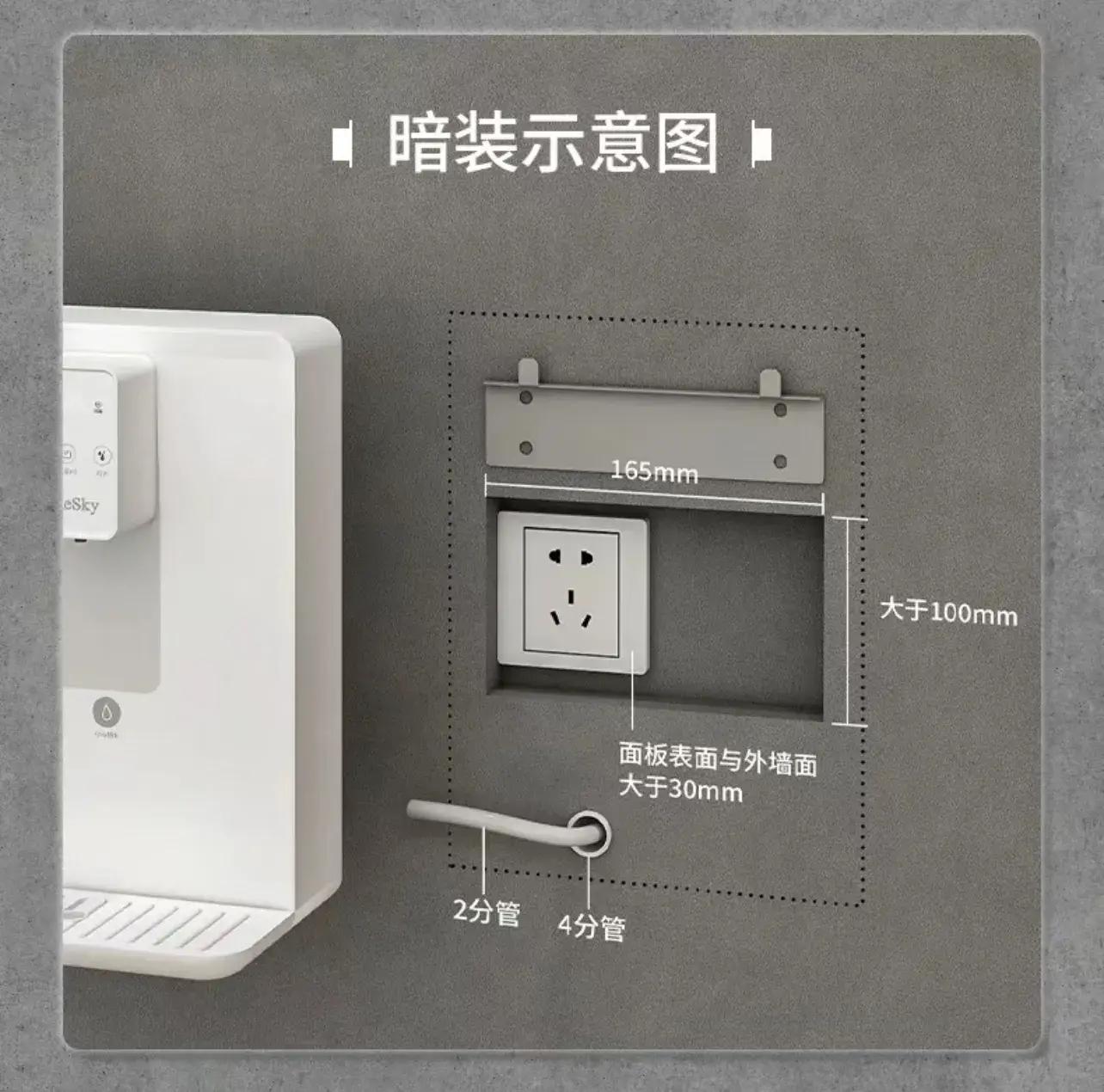 爲防止管線機線材水管裸露,不好看,可以提前在管線機位置裝一個安裝式插座、預埋一個4分管,引到櫃子裏。