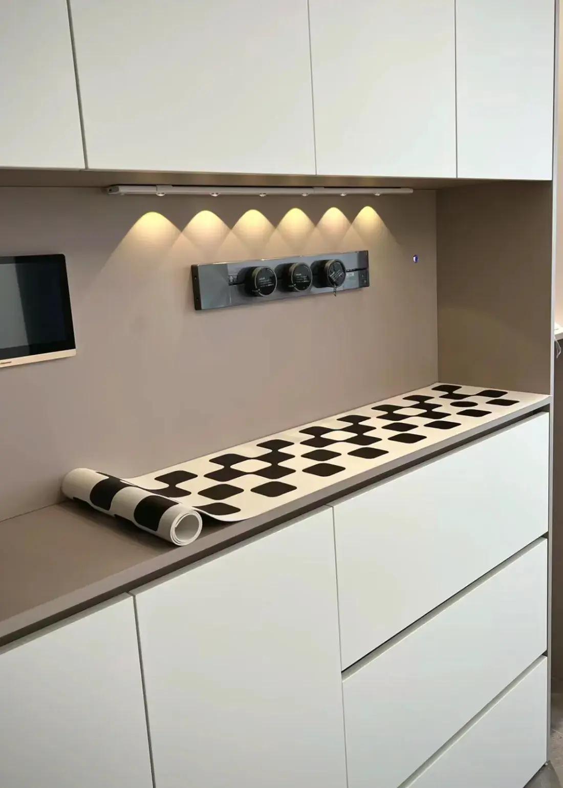 只需要在裝修時,在此處裝一個軌道插座即可解決開放格小家電的供電問題。