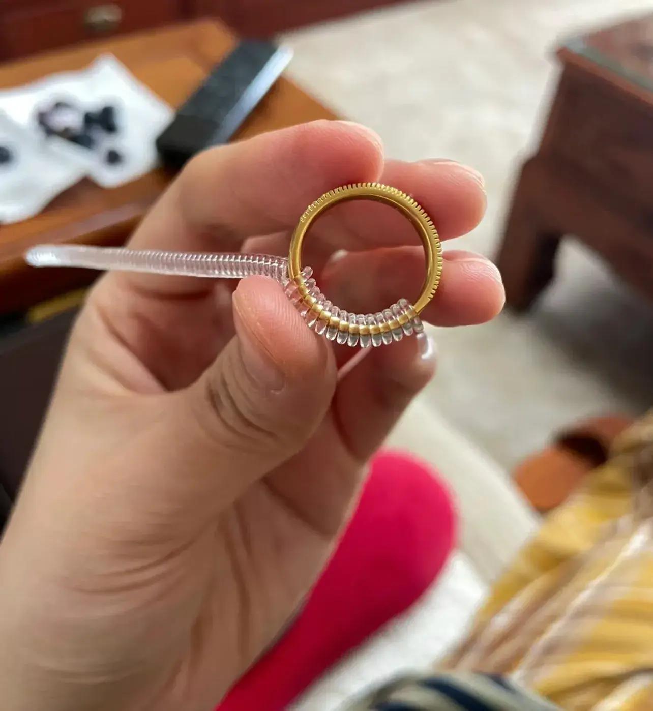 看着類似小號的電話繩,根據戒圈大小,用多少剪多少,還算方便,關鍵透明的,存在感低。