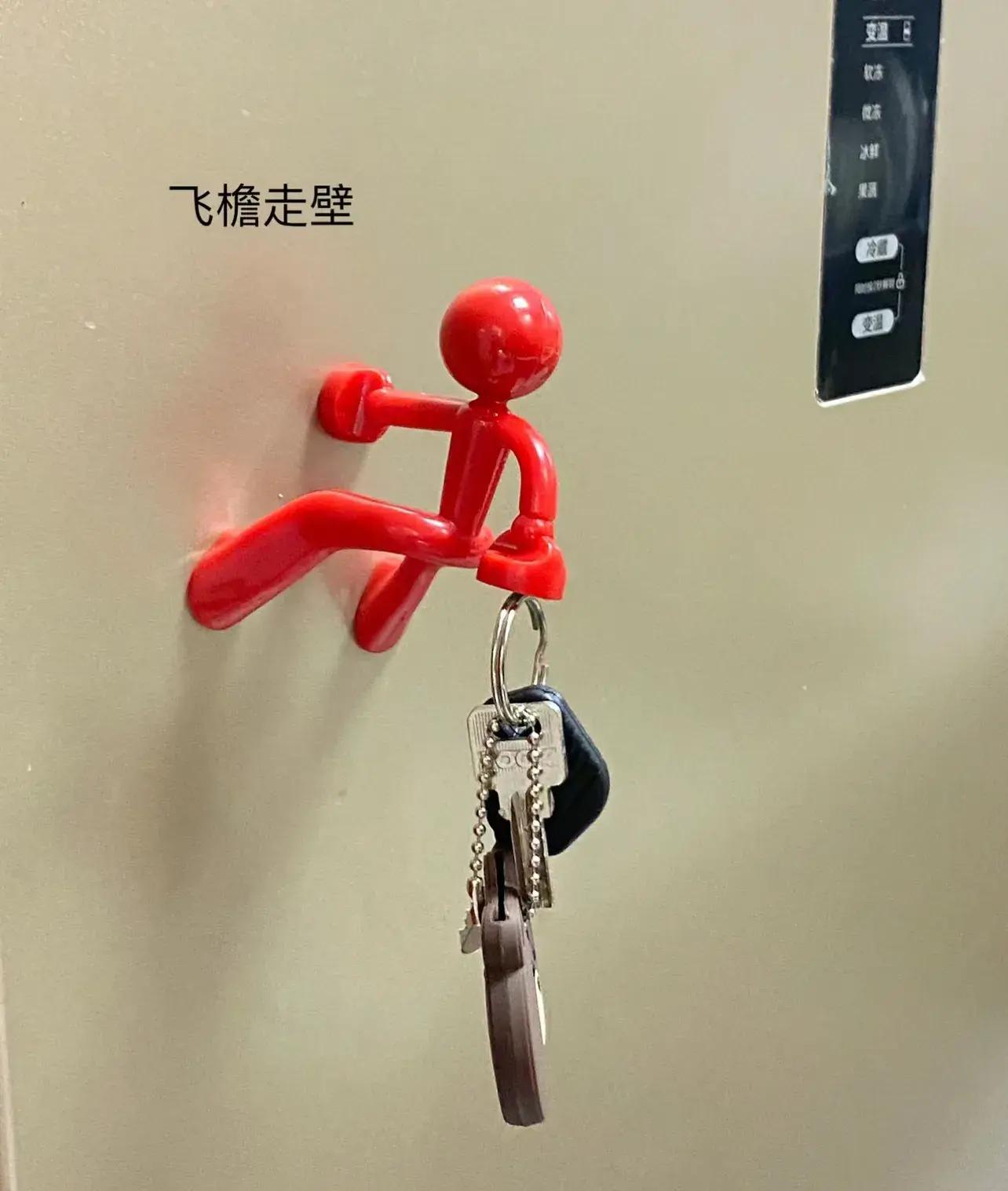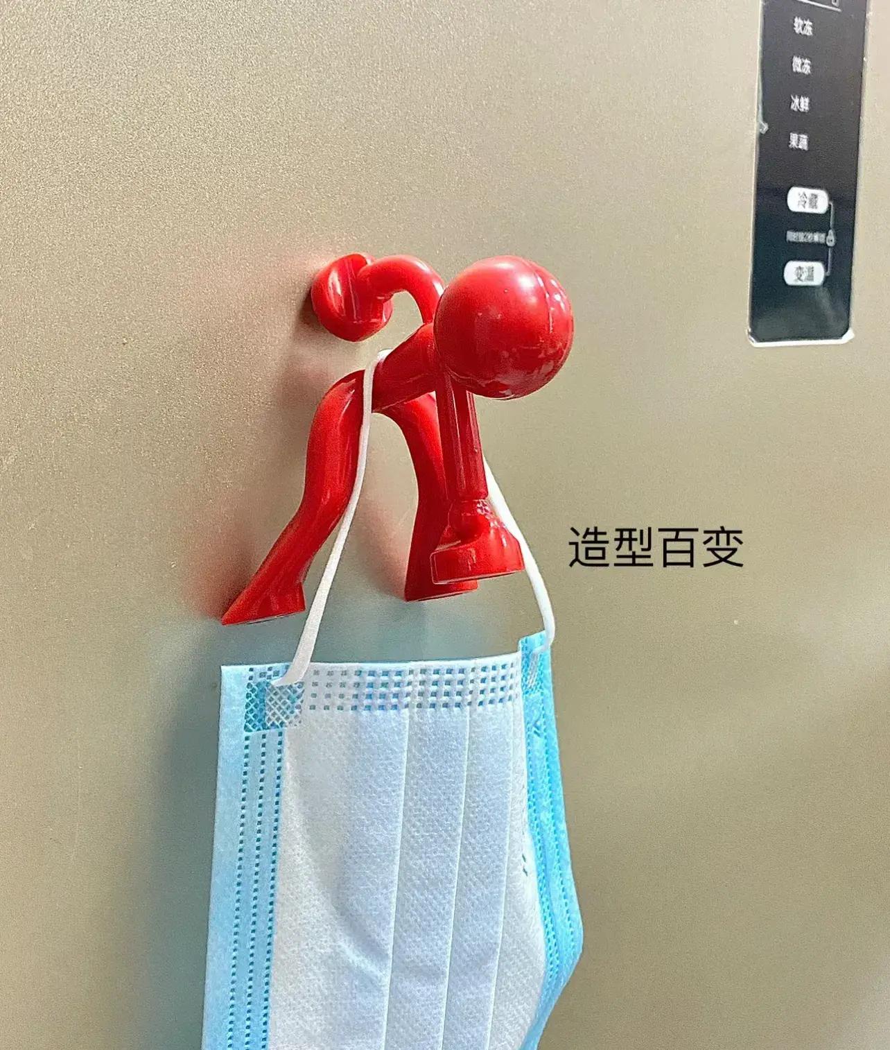 還可以吸附在廚房裏,冰箱上,任何金屬的地方,用時是掛鉤,不用時就是個樂趣小人兒。