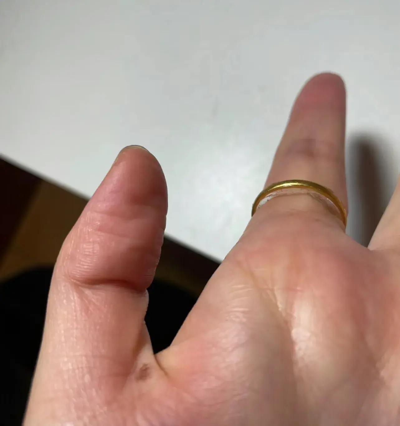 做美甲時,讓美甲師幫忙給戒指上塗點甲油膠或封層,然後照燈、烤乾,這樣改動的部分更隱形,尤其戴在手上,社交距離幾乎看不出來一點倪端。