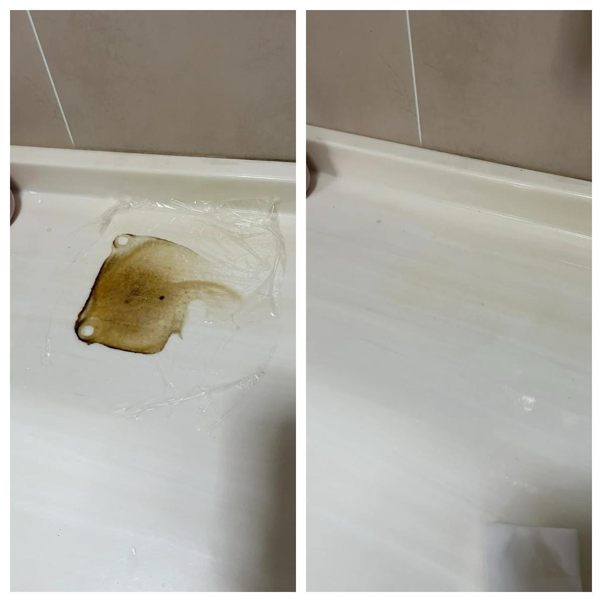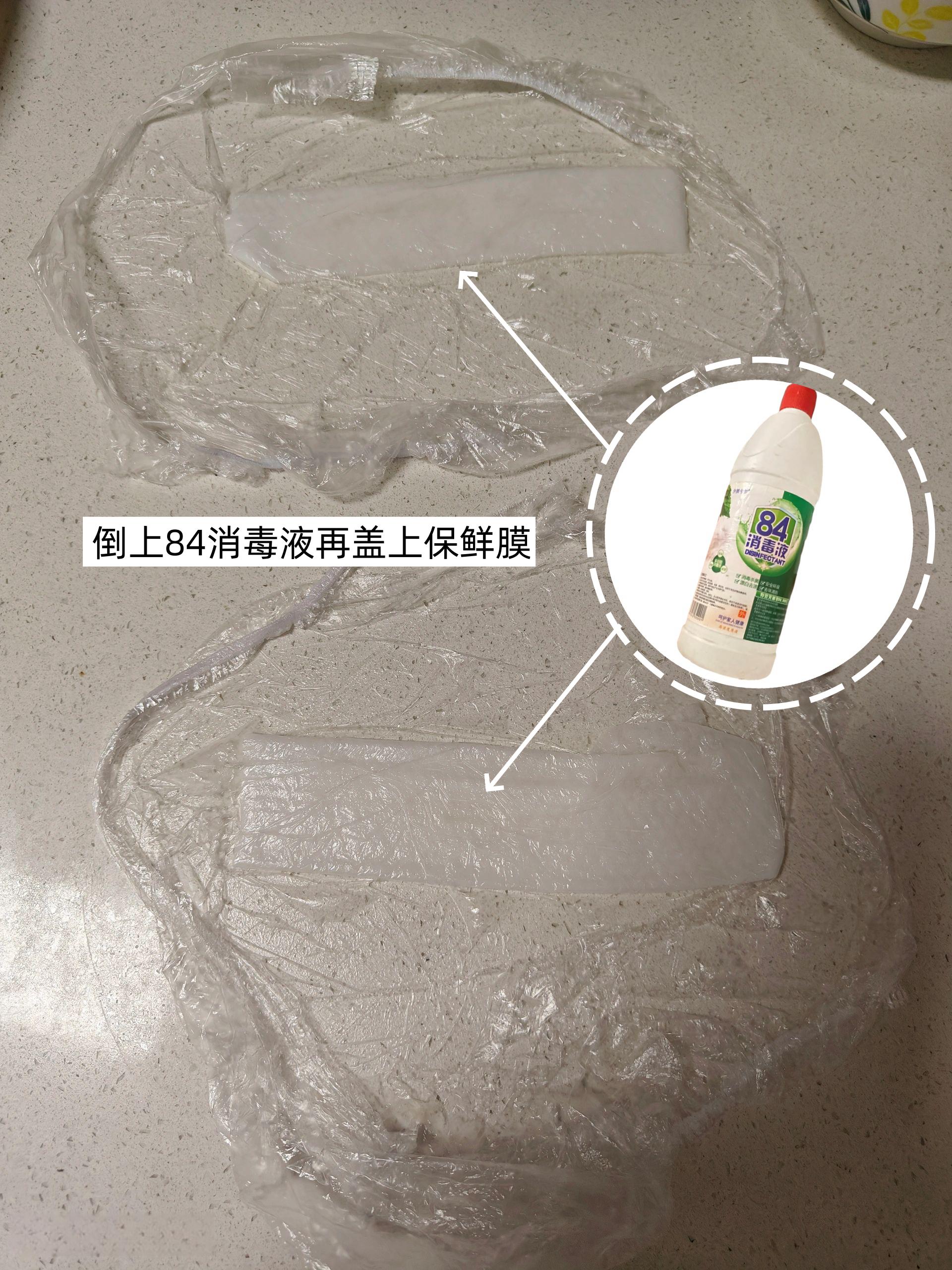 其實家裏最常見的84消毒液就能解決這個問題,檯面哪裏有污漬,就塗一點,記得再用保鮮膜蓋上,靜置一晚上差不多就能恢復如初。(用保鮮膜蓋上是爲了讓84消毒液持續更久,不至於很快乾掉)