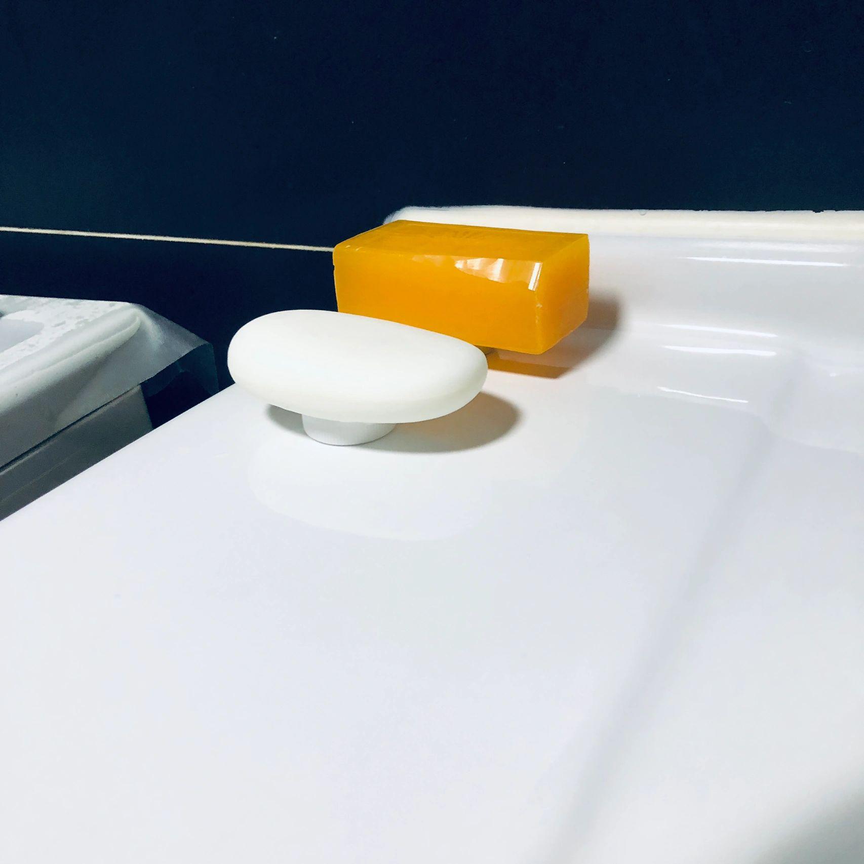 其實只需要在新肥皂後面,安裝一個廢舊的飲料瓶蓋即可。操作的時候用點力,蓋子就能緊緊扣在肥皂上,完成後肥皂就自帶一個美觀極簡且免費的瀝水架了。
