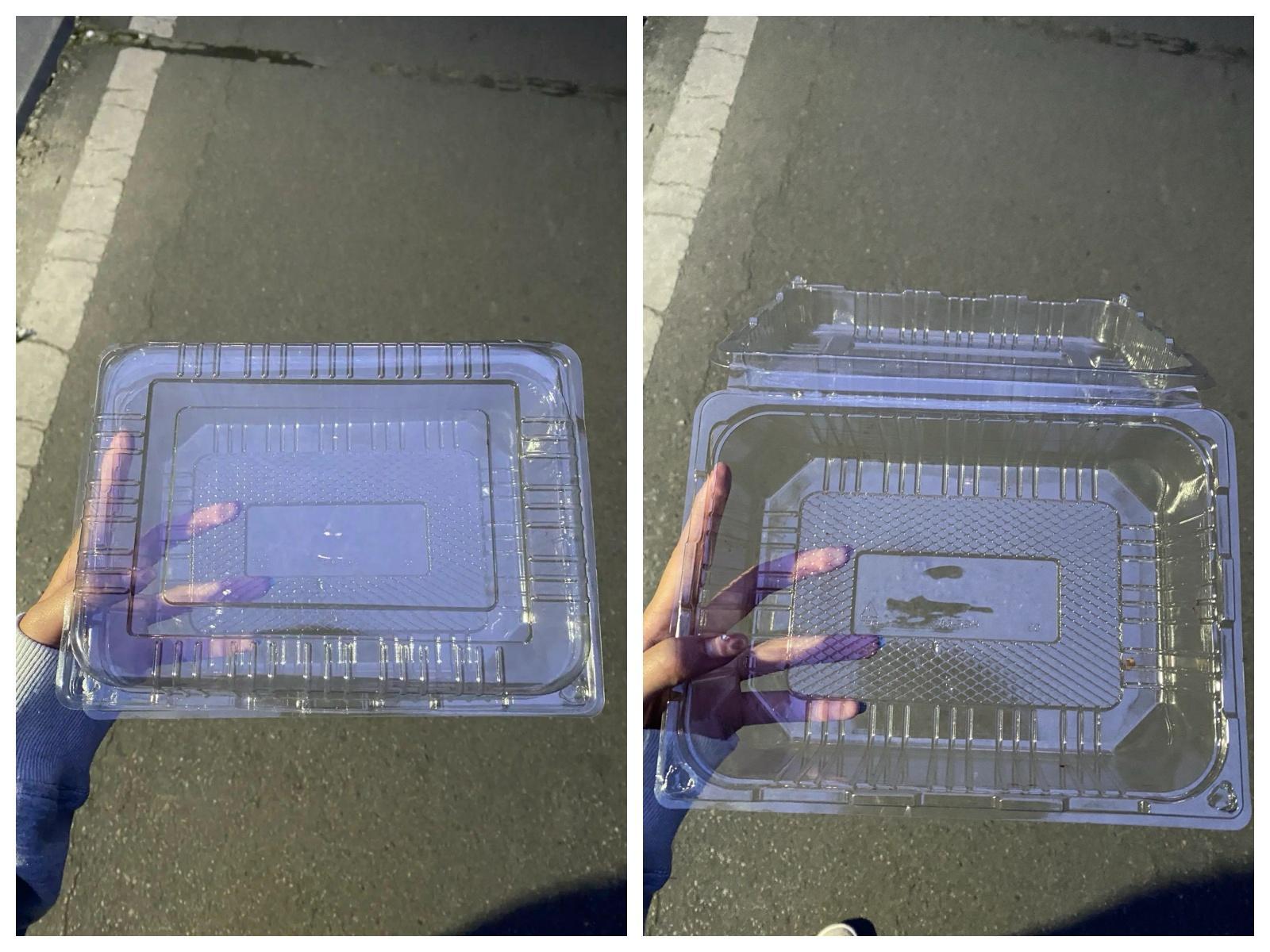 生活中買水果,尤其是小番茄、獼猴桃、草莓之類的,經常會帶一個這樣的開蓋塑料盒。