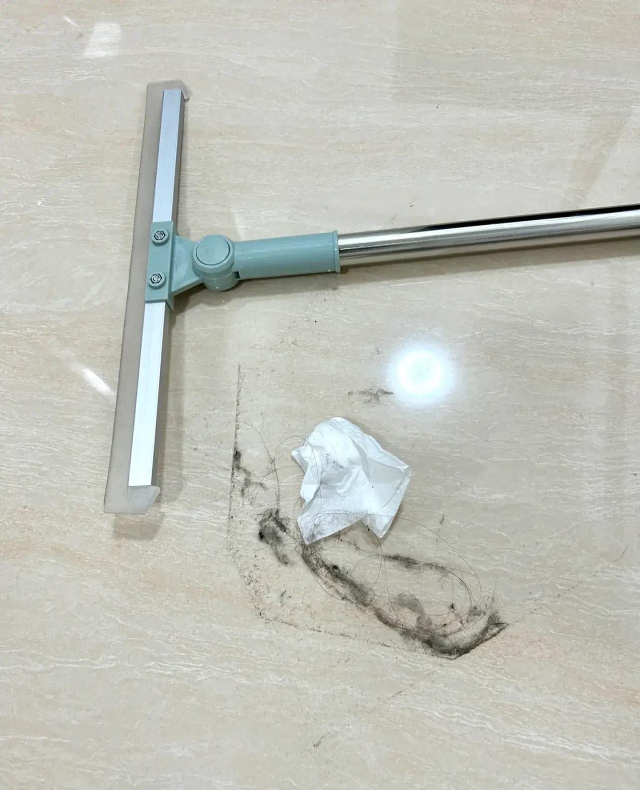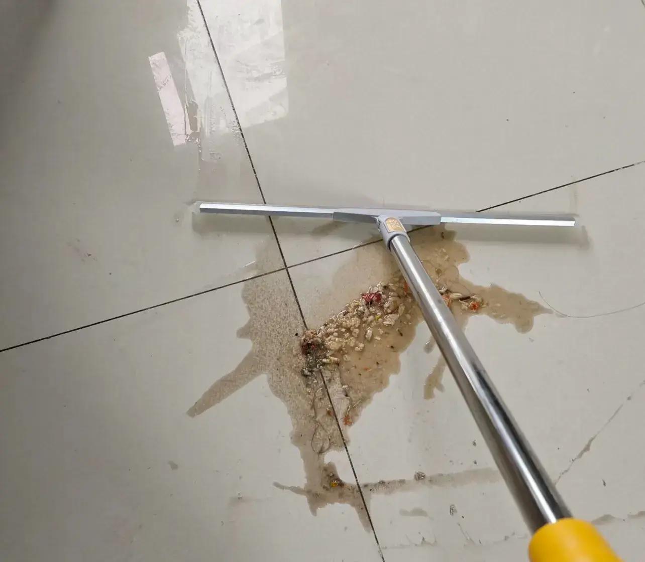 因爲人家本來就是個衛生間刮水的,應對這種倒在地上的液體,那屬於老本行了,扒拉幾下就能刮到一塊去,再攬入簸箕即可。