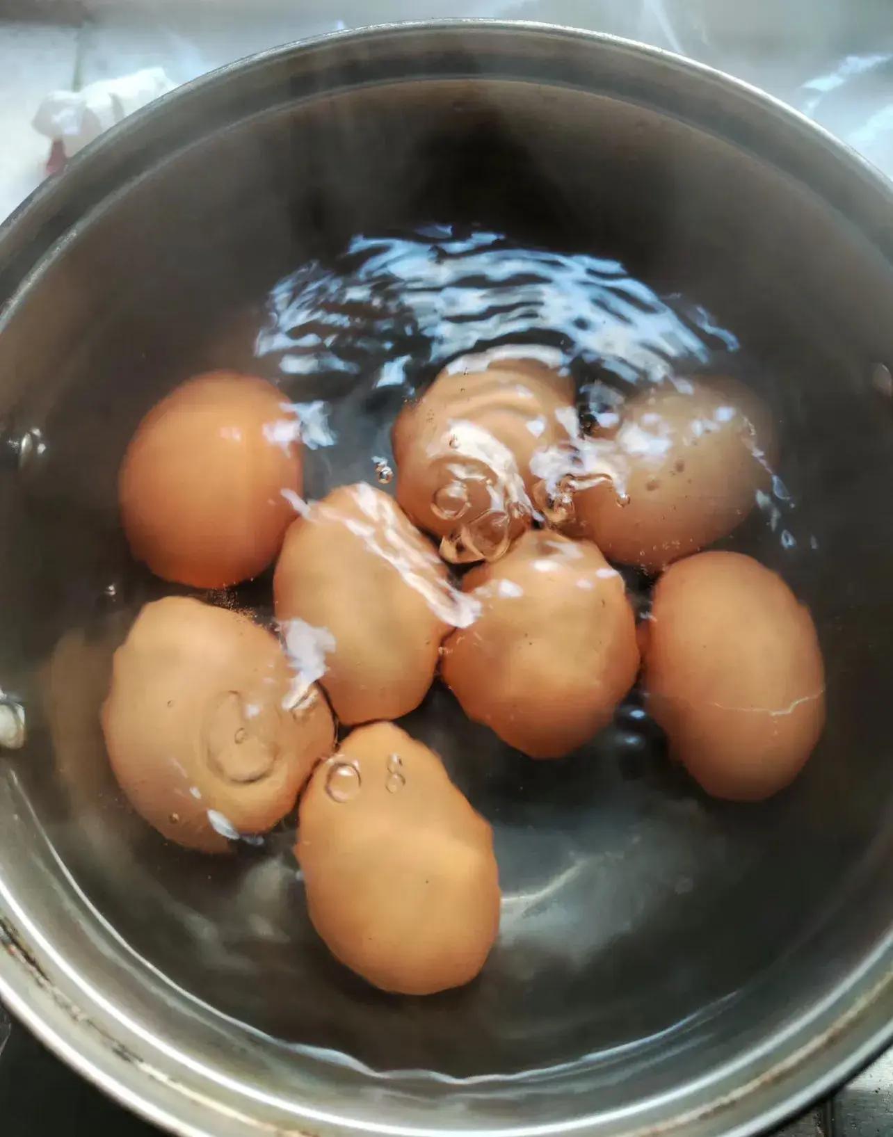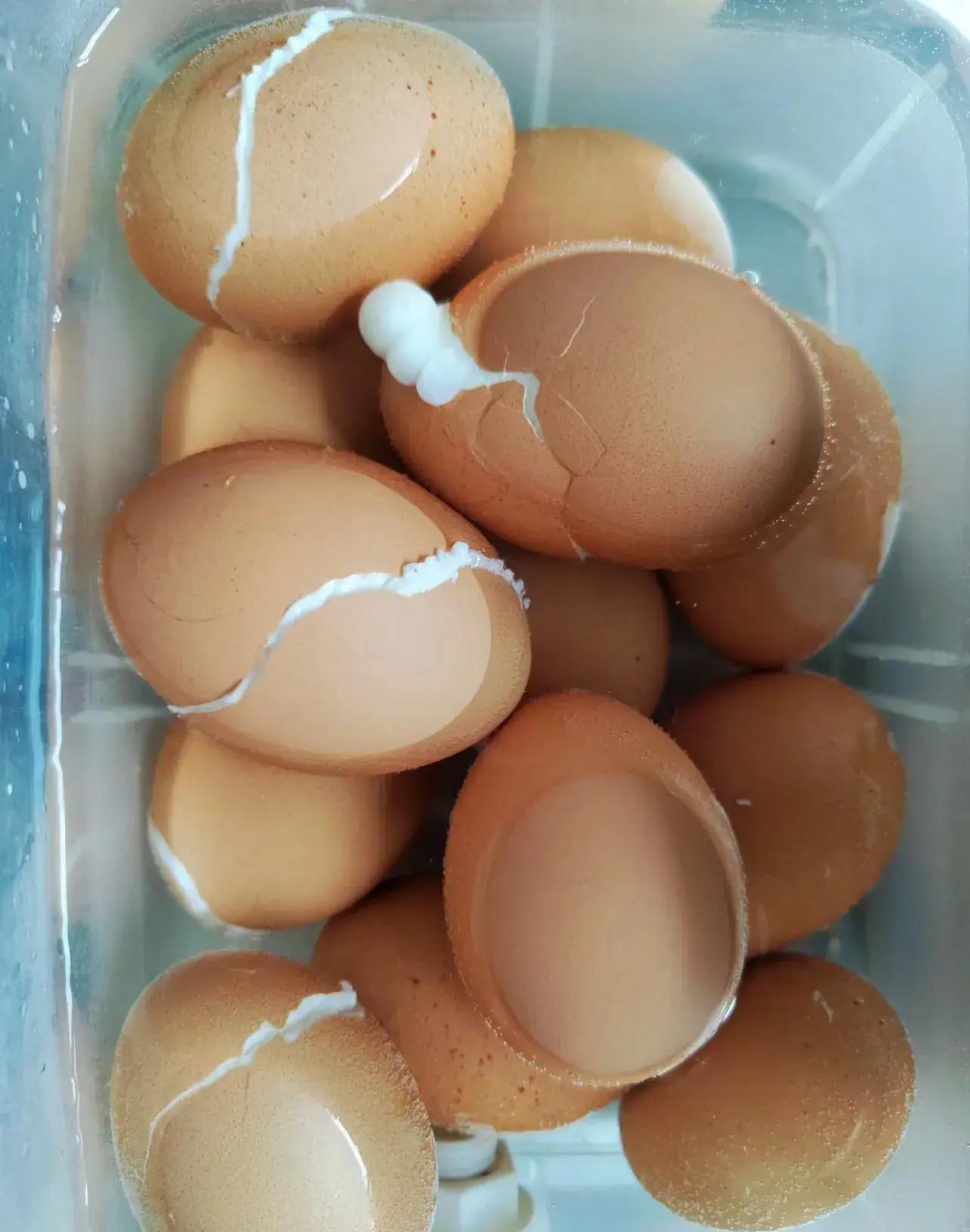 起因是我煮雞蛋,把雞蛋煮碎了,而且雞蛋皮也粘着雞蛋瓤,特別難剝!