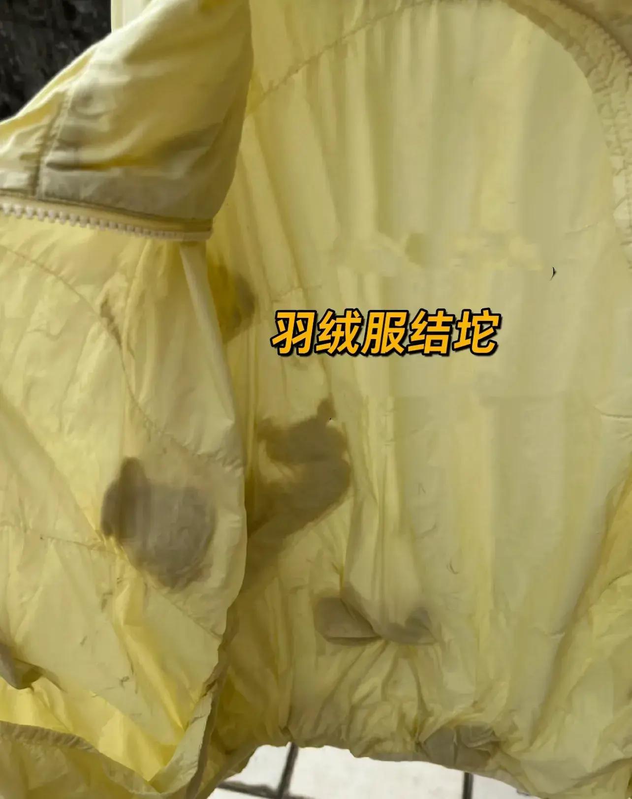 看着膈應不說,關鍵是羽絨服是靠蓬鬆的羽絨,讓衣服內部形成一個空氣隔熱層,從而阻止熱量流失,達到保暖的目的,結成坨,就意味着羽絨服喪失保暖性!