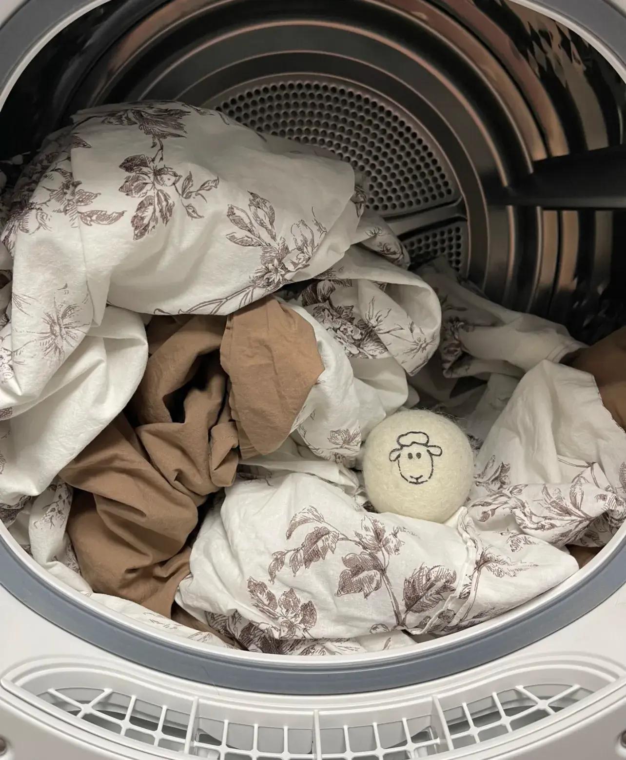 我自己親測,以前50分鐘,只要有四件套必然會局部不幹的情況,但用了羊毛球之後,就再也沒發生過烘不幹的情況。