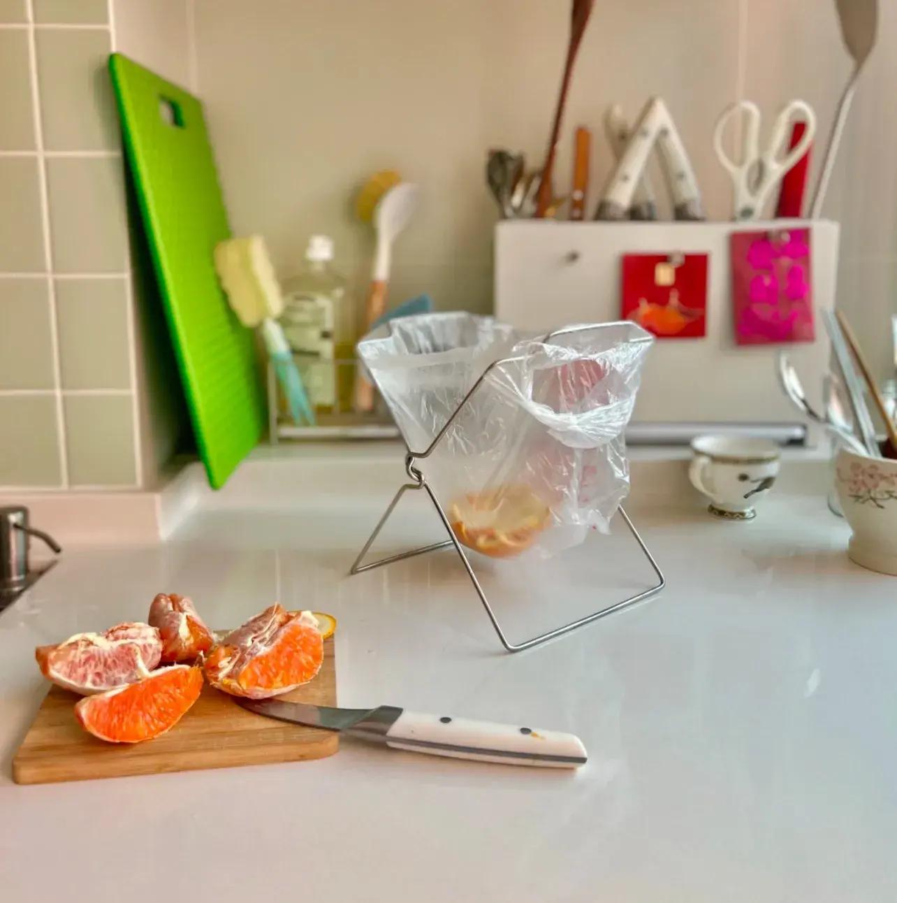 就這個幾塊錢,簡單的東西,讓套垃圾袋變得極其容易,而且大小垃圾袋,它幾乎都能給你兼容。買菜剩下的袋子,完全就夠用了,連買垃圾袋的錢都省了。