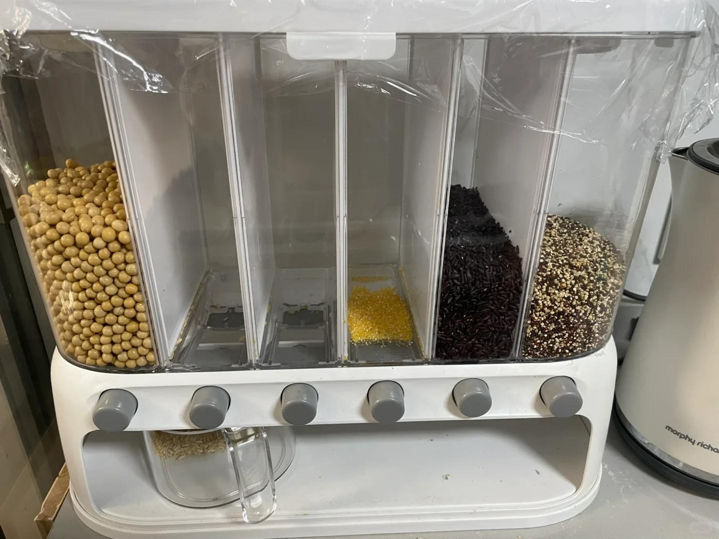 實際上買回家一用就不是那麼回事兒了,雖然看起來功能強大,可同時裝6種穀物,但實際很不方便。首先對於一般家庭來說,除了大米之外的其他穀物,都不會囤很多,導致空空的裝不滿,如果爲了裝滿而買一堆穀物回來,又容易受潮生蟲。