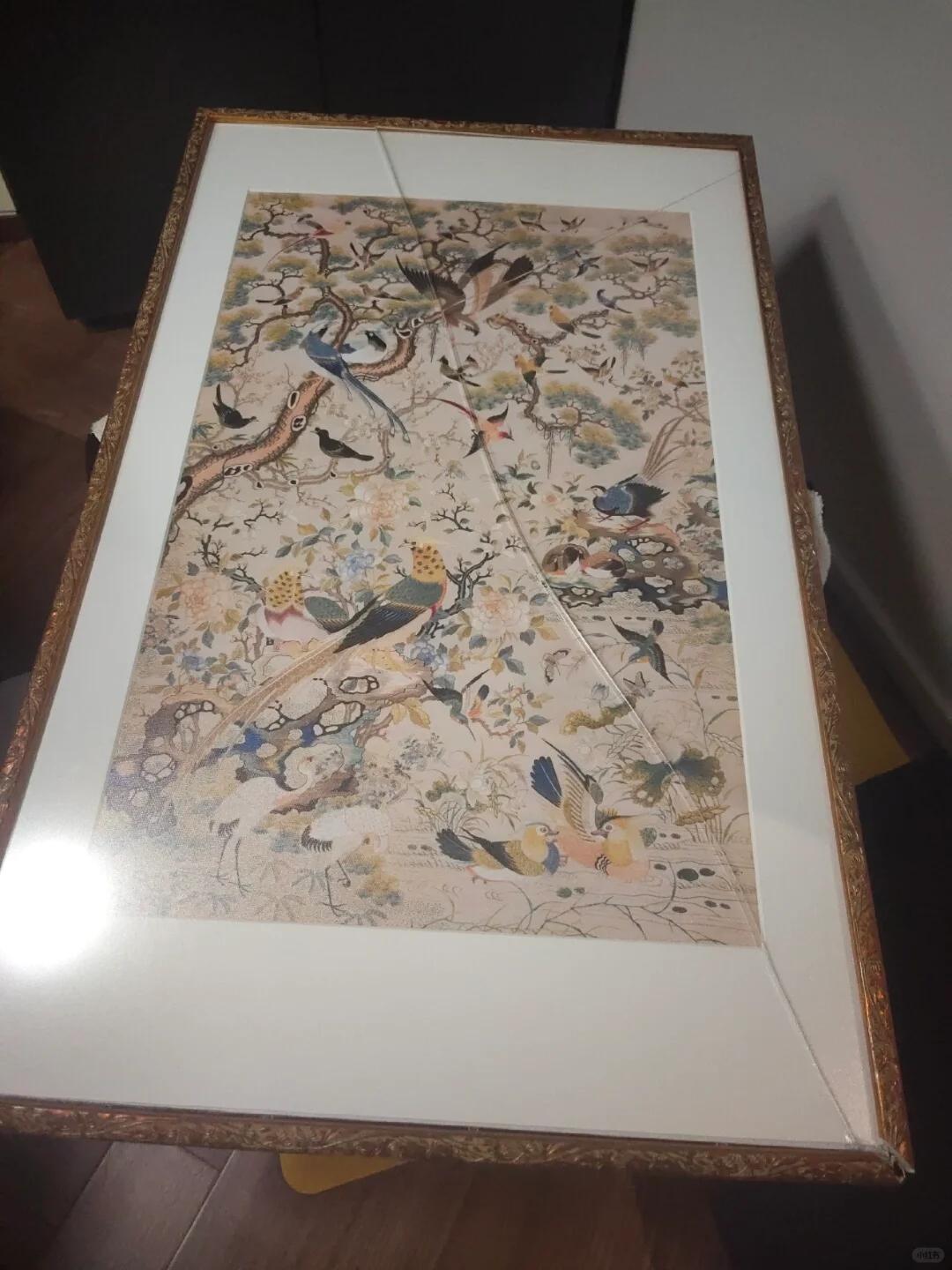 我當時腦瓜子都嗡嗡的,畫框直接砸爛,地板也被砸出一個坑,看着牆上這麼多的掛畫無痕貼,我陷入了沉思,哎……又踩坑了。