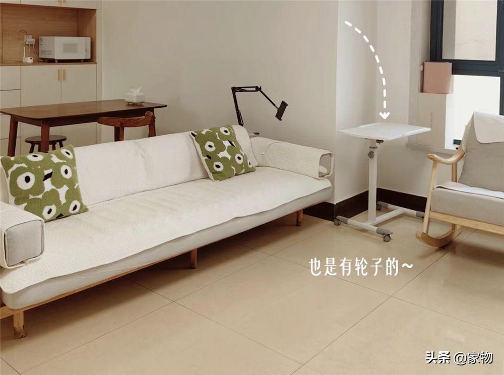 客廳茶几我個人認爲還是得有一個的,但不一定是厚重的大茶几,帶有輪子的小邊幾也行,隨手放個手機、遙控、杯子什麼的都很方便,還不佔地,擦地掃地也不礙事。