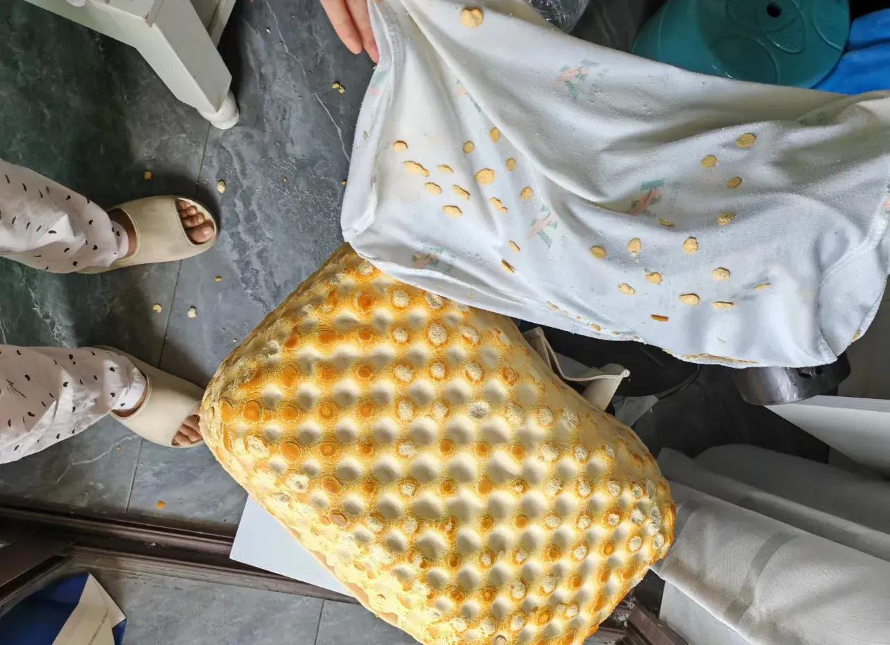 天然的乳膠,其實發黃、掉屑,也沒啥大問題,無非就是看着膈應,躺着沒那麼舒服!