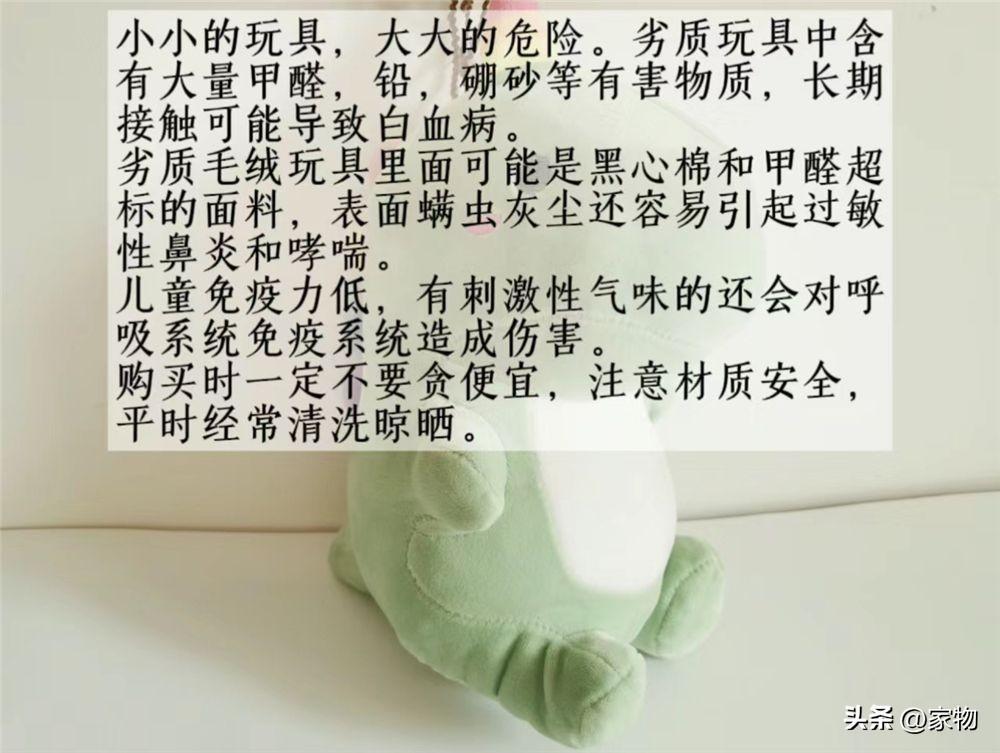 關於毛絨玩具,我曾不止一次說過,既不要買劣質的毛絨玩具,無論是從外皮還是從填充來說,都會有危害;也不要買太多的毛絨玩具,時間長了積聚灰塵污漬,對鼻炎和氣管都不好。