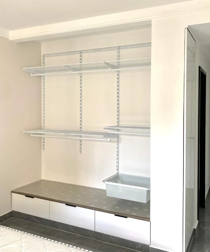 砌牆衣櫃,是用金屬架來做內部的支撐的,這樣的金屬架,是可以隨時調節的,你可以根據你的需要,隨時增加或減少層板,也可以隨時改變層板的高度,這樣就可以讓你的衣櫃,隨時適應你的變化,也可以讓你的衣櫃,更加靈活,更加方便。