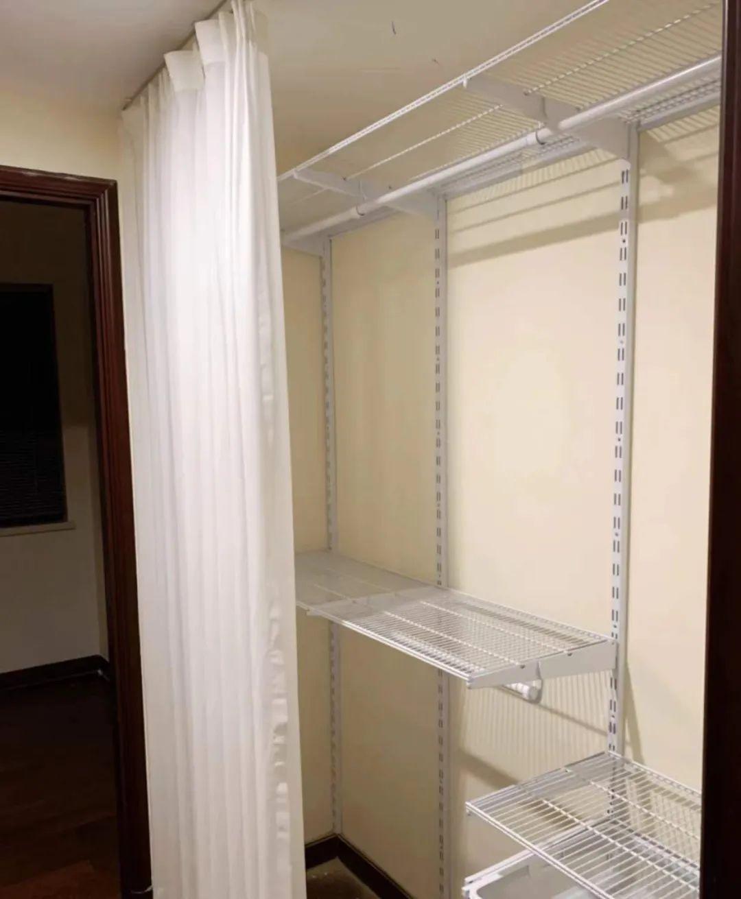 找了當地的不鏽鋼廠家,自己畫了圖紙,做了兩扇寬度50CM的隔板,兩頭鋼絲固定,承重力max!加上晾衣杆,連工帶料500元。