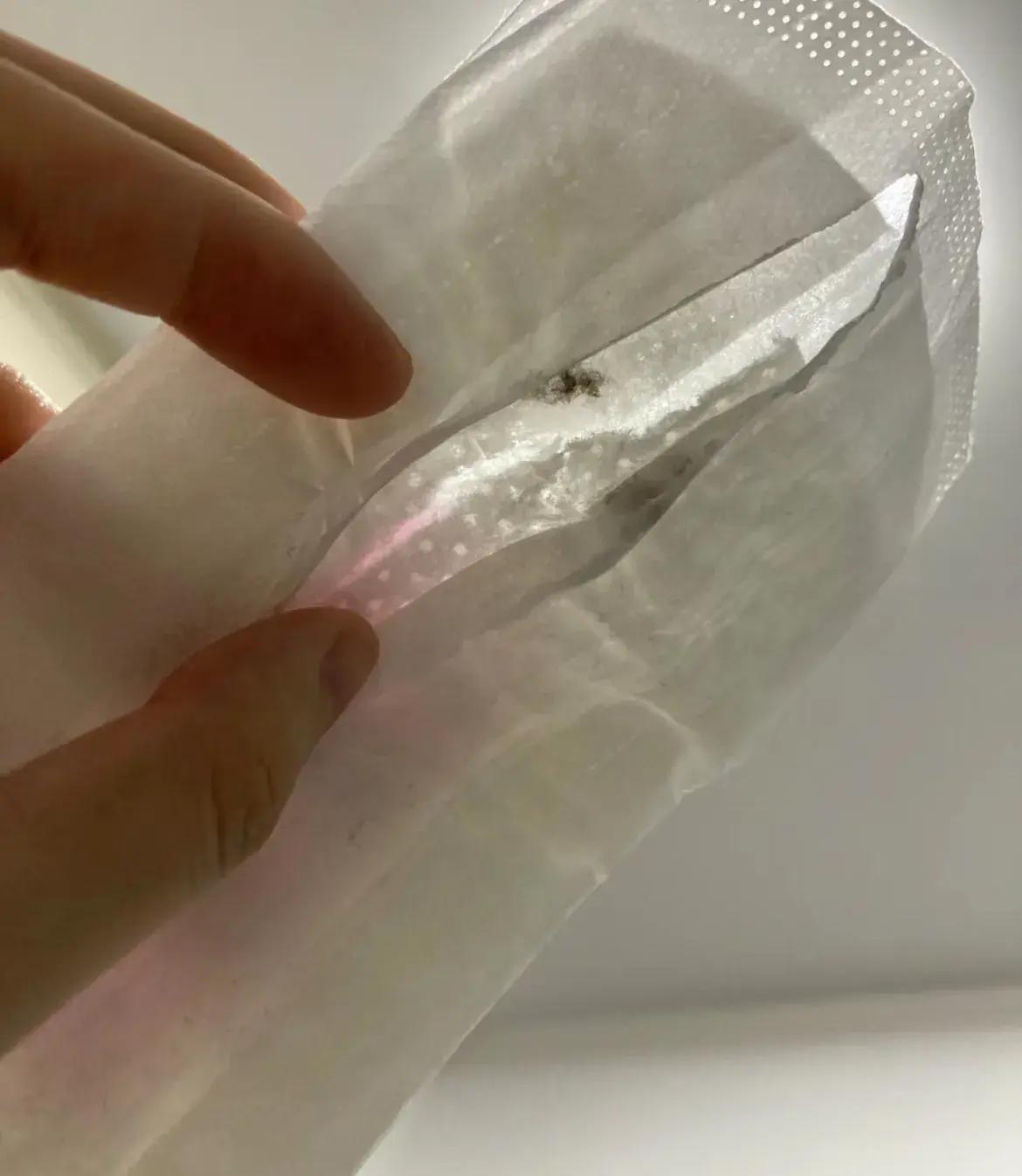 有網友就遇到了,衛生巾裏有異物的情況,看見都讓人覺得後怕。所以,對於這類型物品,不要只關心價格,不關心質量安全。