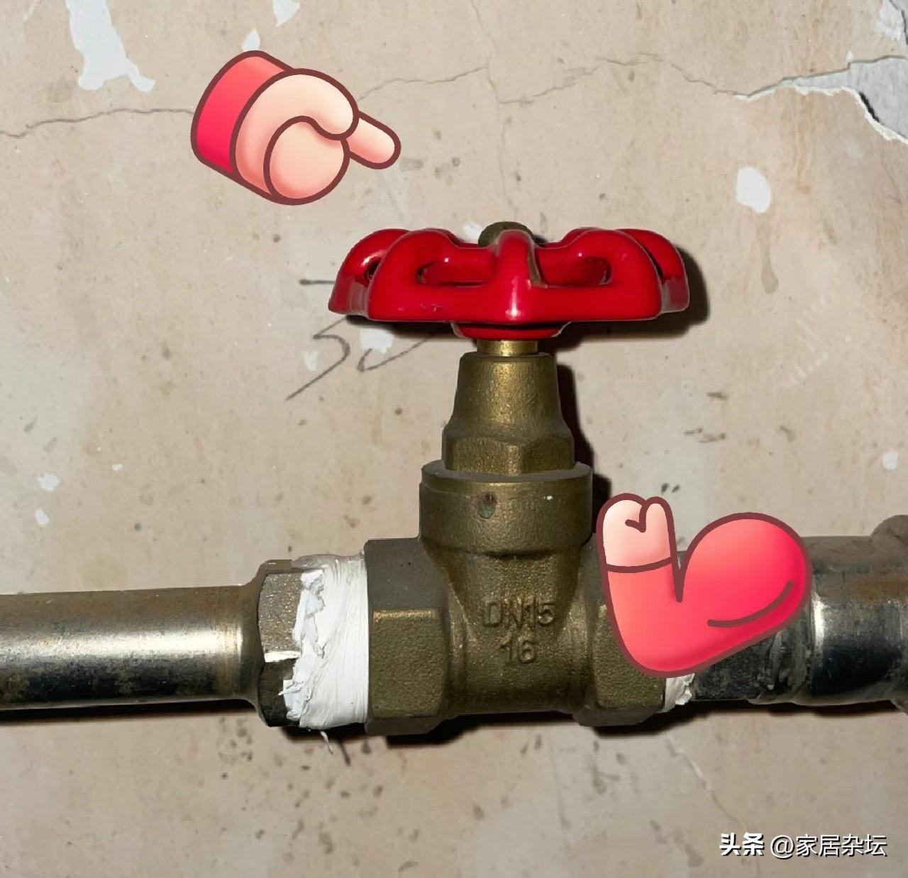 這個總閥門,一般是處在管道井內,在水平立管上,可以找到去我們家的那兩根管道上的閥門。