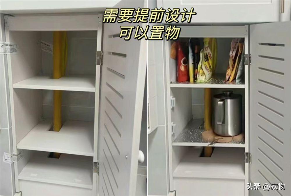 裝修時,也還可以在燃氣管周圍包裹起來添加隔層,做成一個多層的小櫃子,裏面雖然放不了太多的大件,但是能放一些調味品瓶瓶罐罐或備用調料等。