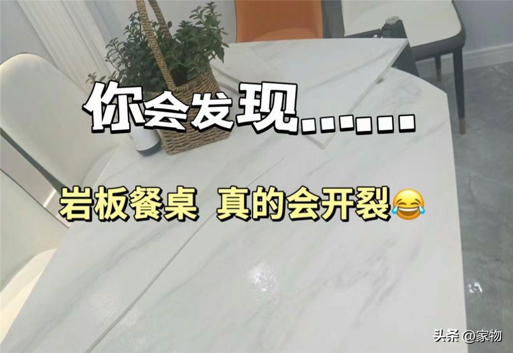 現在市面上大部分的巖板餐桌,其實就相當於是一塊大瓷磚面板,有時候搬拿兩邊不搬架子的話,都容易出現開裂的問題,我個人是不太建議大家用的,一定要買,也買大牌子的爲好。