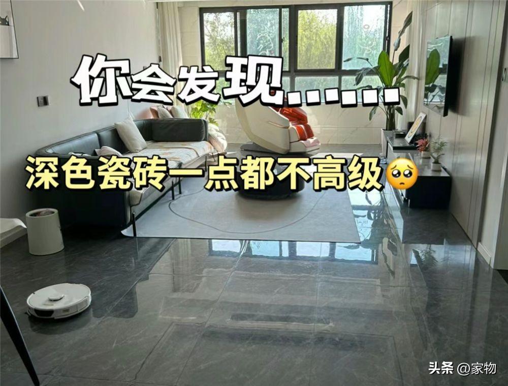 深色瓷磚這東西,我是碰都不會再碰,尤其是放到我們普通戶型的視角下,它完全是起到了反作用,既會影響視覺觀感,讓室內變得逼仄壓抑,還很顯髒,不實用。