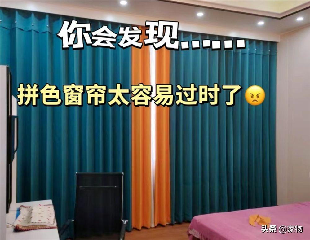 拼色窗簾一度是家裏裝飾的重點,但時間長了,你就會發現它真的是太扎眼了,尤其是撞色的設計,用時間長了只會讓你覺得有些彆扭尷尬,我個人是不喜歡的。