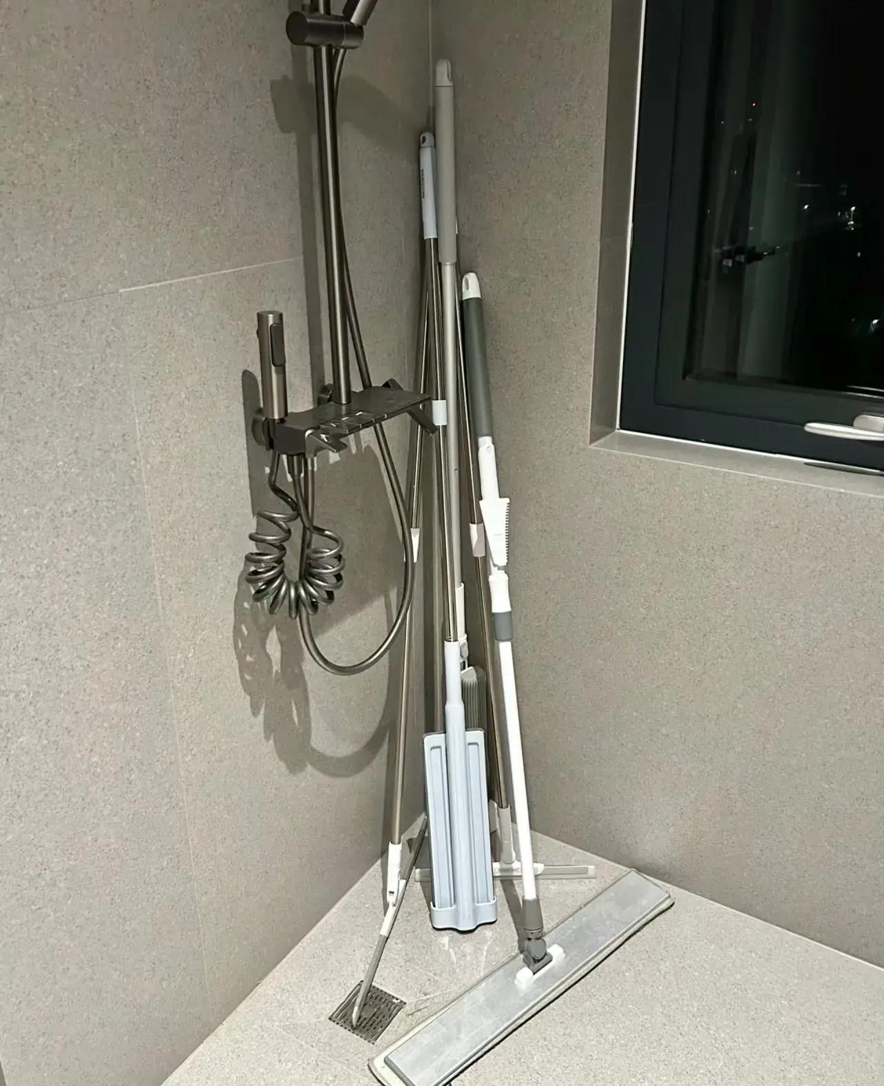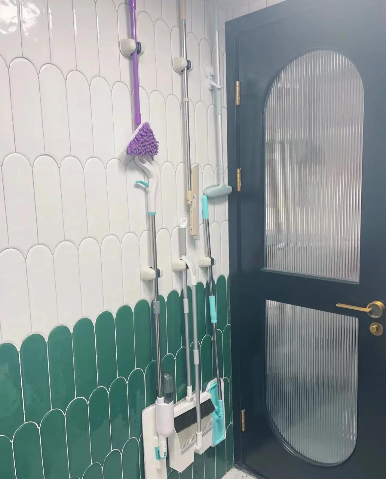 但有了拖把掛架的衛生間,所有清潔工具都能上牆收納,整整齊齊。