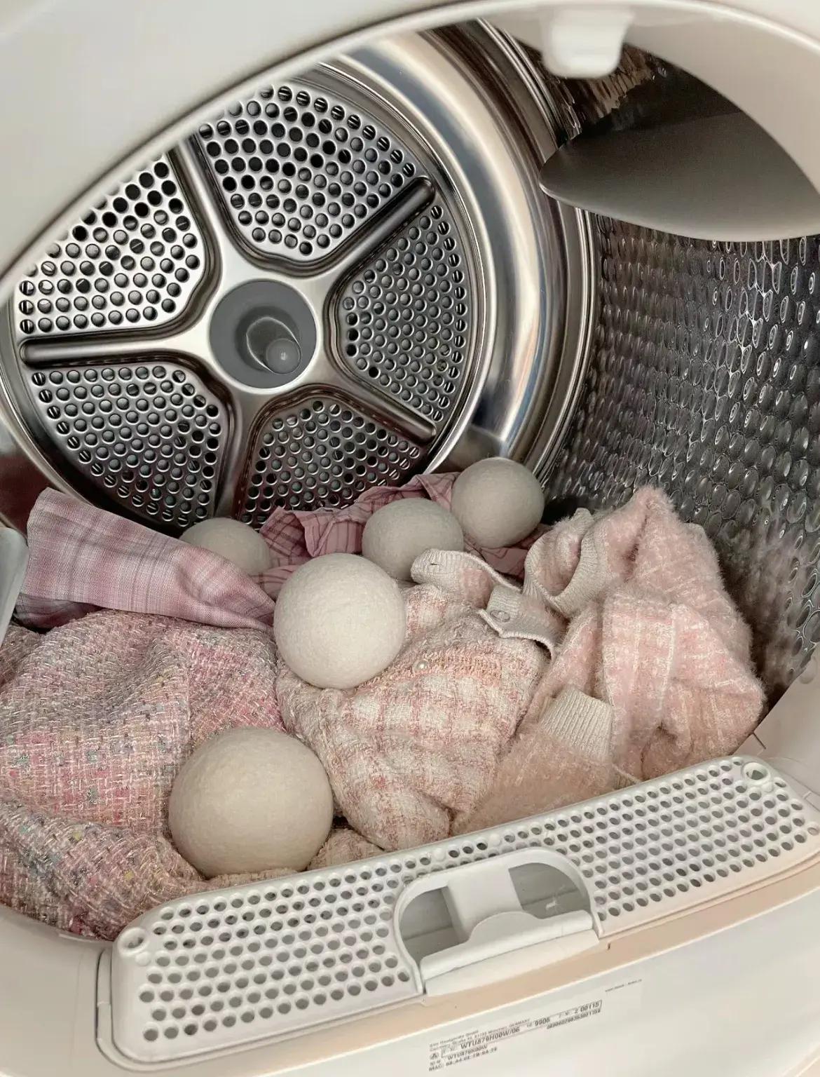 羊毛球是烘乾機標配,可以增加衣物間隙,縮短烘乾時效,並且轉動的過程中會拍打衣服,使其更蓬鬆的同時,也能減少些褶皺。