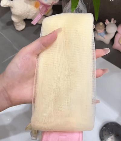 然後,網子自身還能輔助起泡,再用香皂時,都不用拿出來,見水搓搓,就有密集綿軟的泡沫;