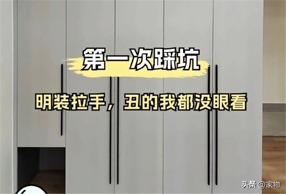 最後說說衣櫃的拉手,之前定製衣櫃沒跟我仔細溝通,直接做了明裝拉手,而且還是那種裝在門板上,外凸明顯的,後面我怎麼看怎麼覺得突兀彆扭。